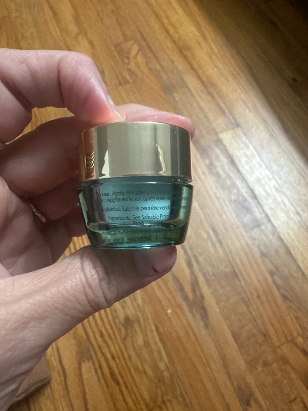 This is a jar of Estee Lauder eye cream. Apply PM after your routine. See saleable product for ingredients.