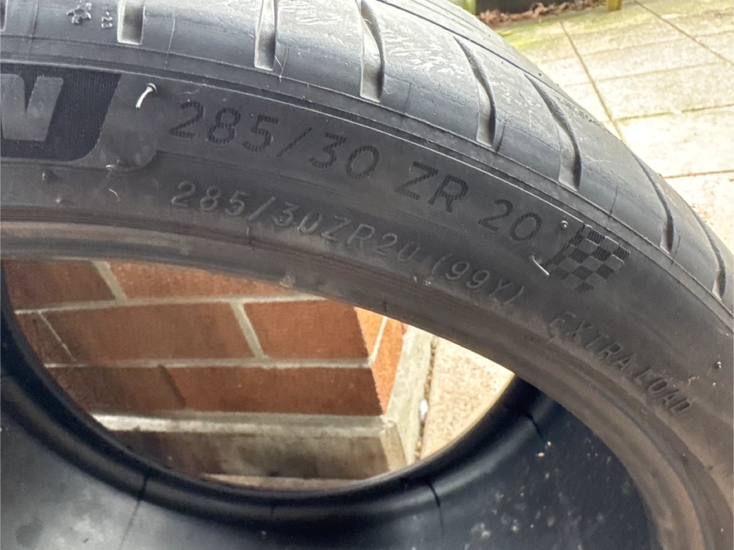 Michelin performance tire. Size 285/30 ZR20 with a 99Y load rating. This is an Extra Load tire. Only one , it was for my M4