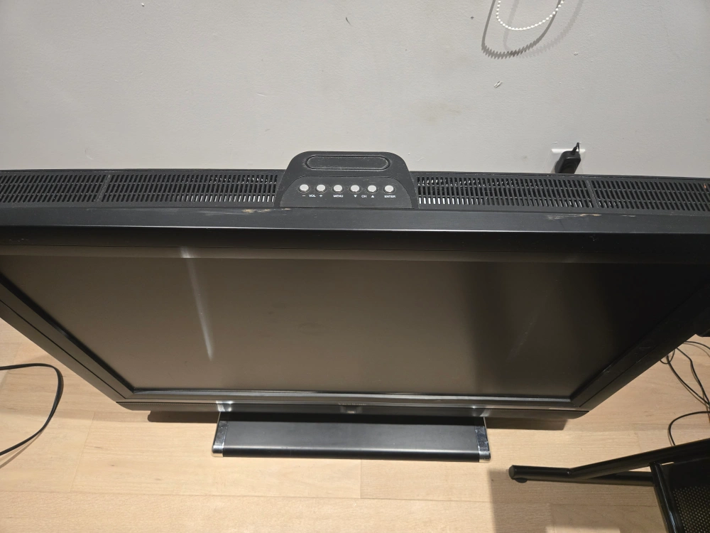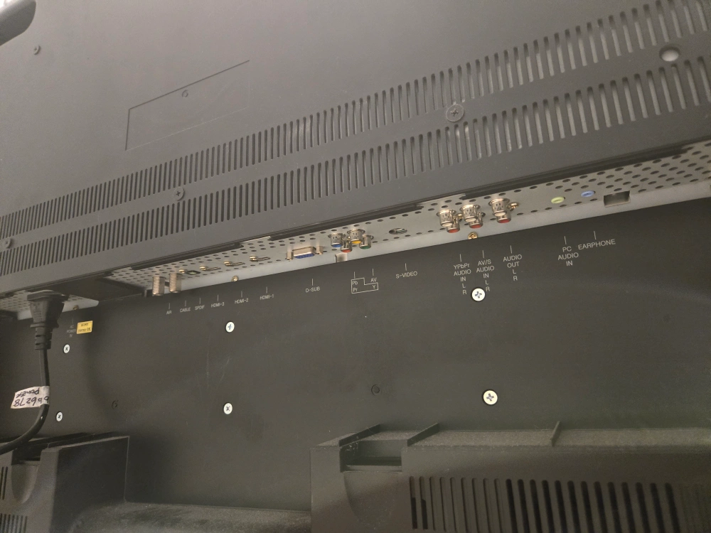 This is a ViewSonic monitor. It's black and comes with a stand. It has multiple input ports on the back, including HDMI, VGA, and D-Sub