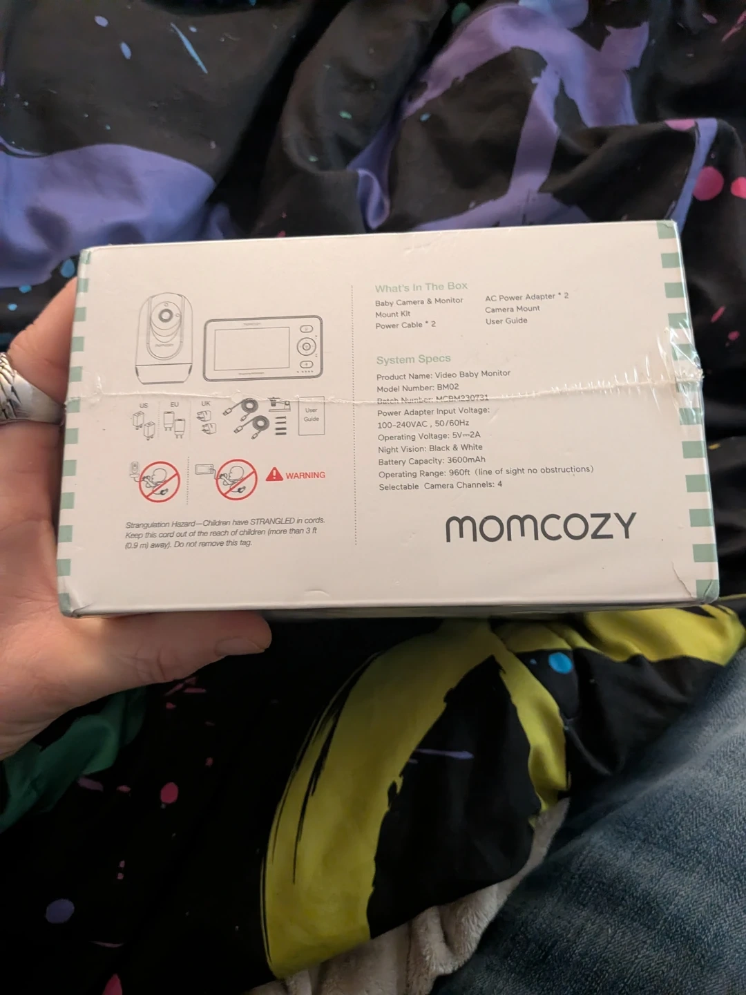 This Momcozy I AM Baby Monitor BM02 offers secure wireless connection and night vision. It's equipped with a 4.3" LCD screen, 3600mAh battery capacity, and two-way audio. Selectable camera channels support up to 4 cameras. BRAND NEW, UNOPENED!! Asking $90 OBO...paid $118 plus taxes but lost receipt so cannot return to store where bought.
