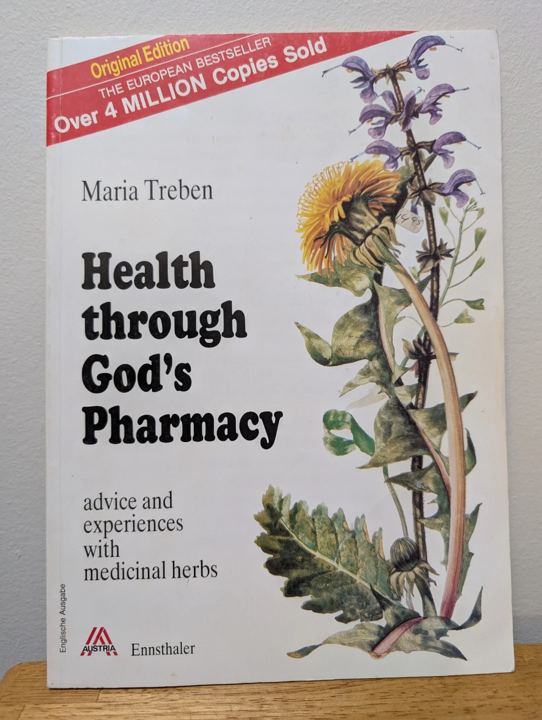 This is the original edition of Maria Treben's "Health Through God's Pharmacy," subtitled "advice and experiences with medicinal herbs." It offers a comprehensive guide to using herbs for health and wellness. The book covers various ailments and their natural remedies.