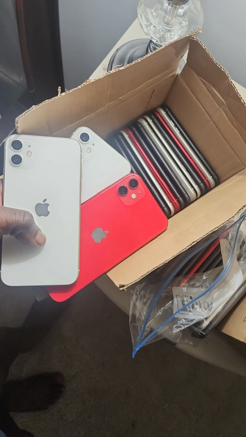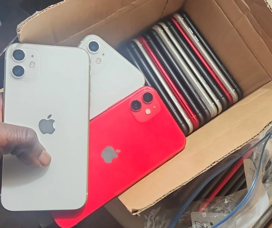 Apple iPhone 11 smartphone. It's red and has a dual-camera system. Includes original box.
