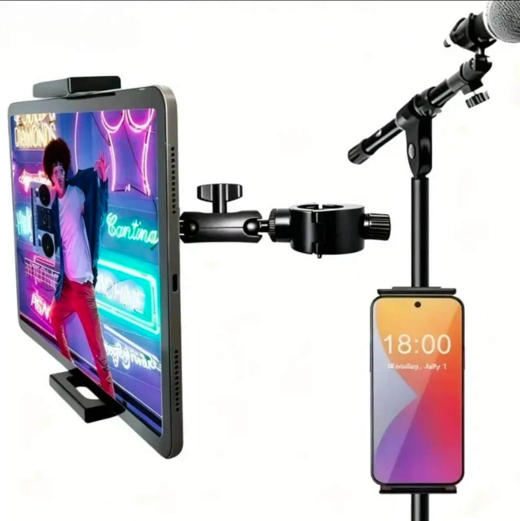 Compatible with Microphone Stands, Handlebars, and Guitar Grips, 4.7-14 Inch Devices, ABS Material