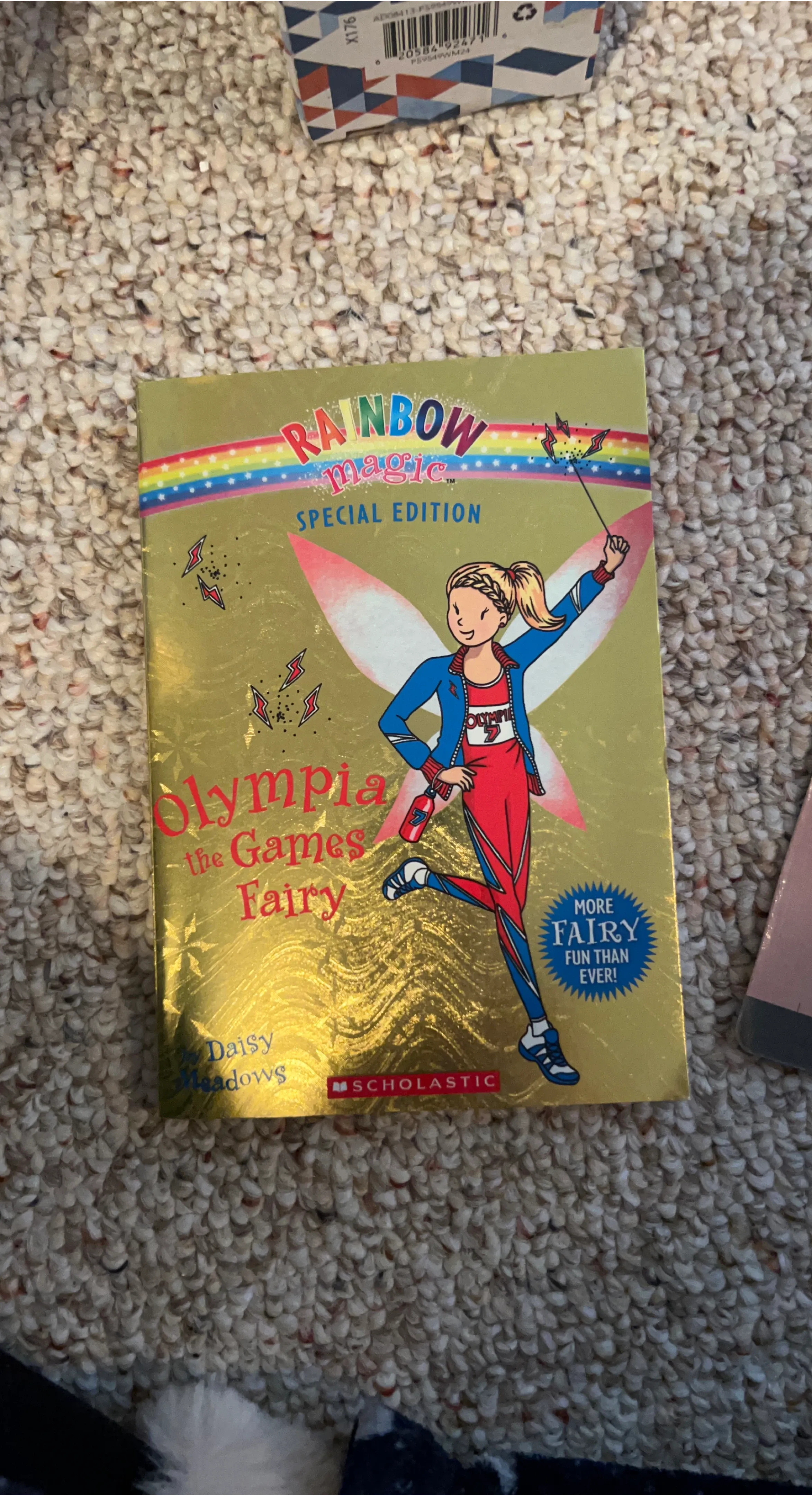 This is Rainbow Magic Special Edition: Olympia the Games Fairy book by Daisy Meadows. It's a Scholastic book. The book is about a fairy who is the Games Fairy. It's designed for young readers who enjoy fantasy stories.