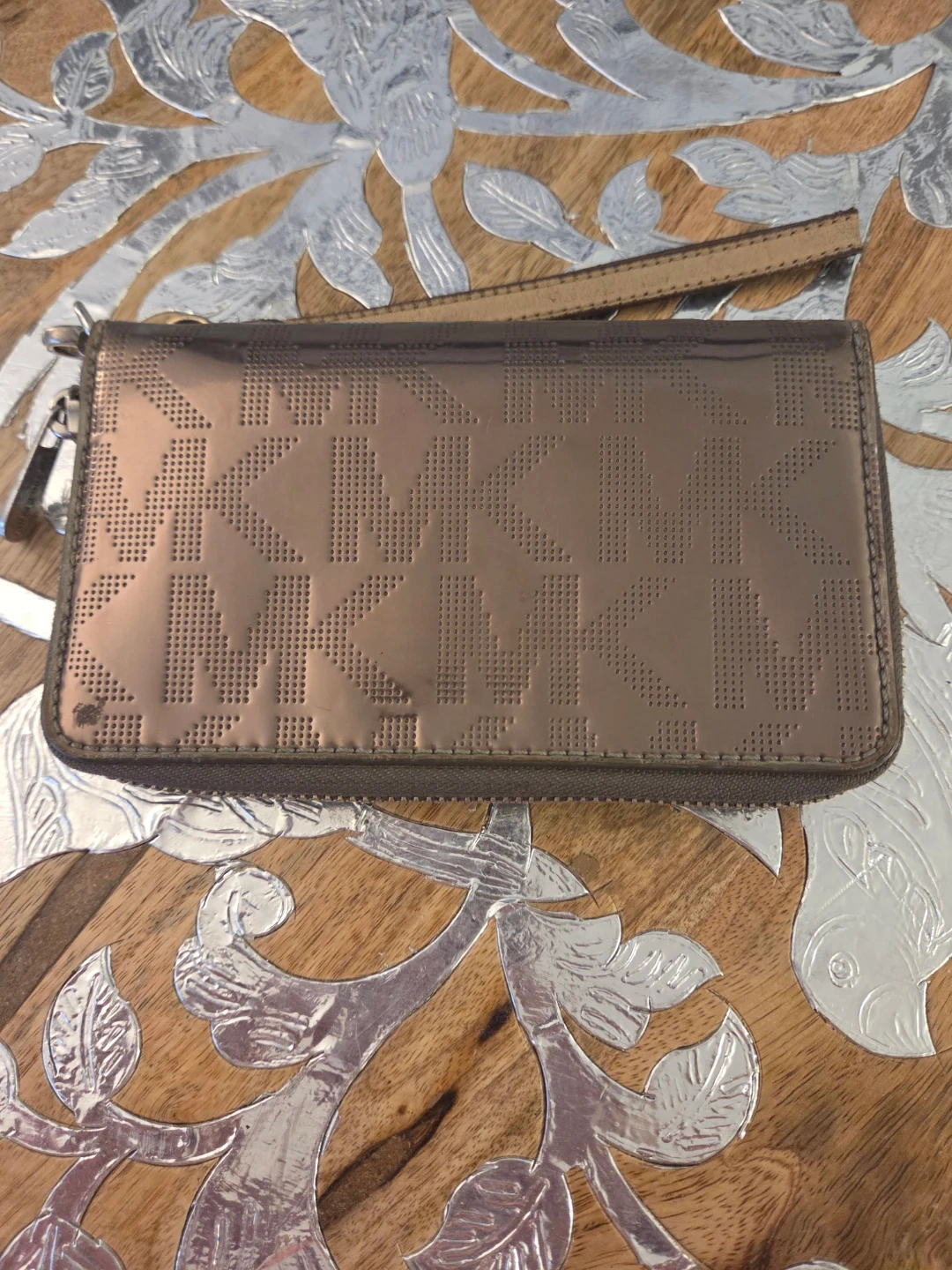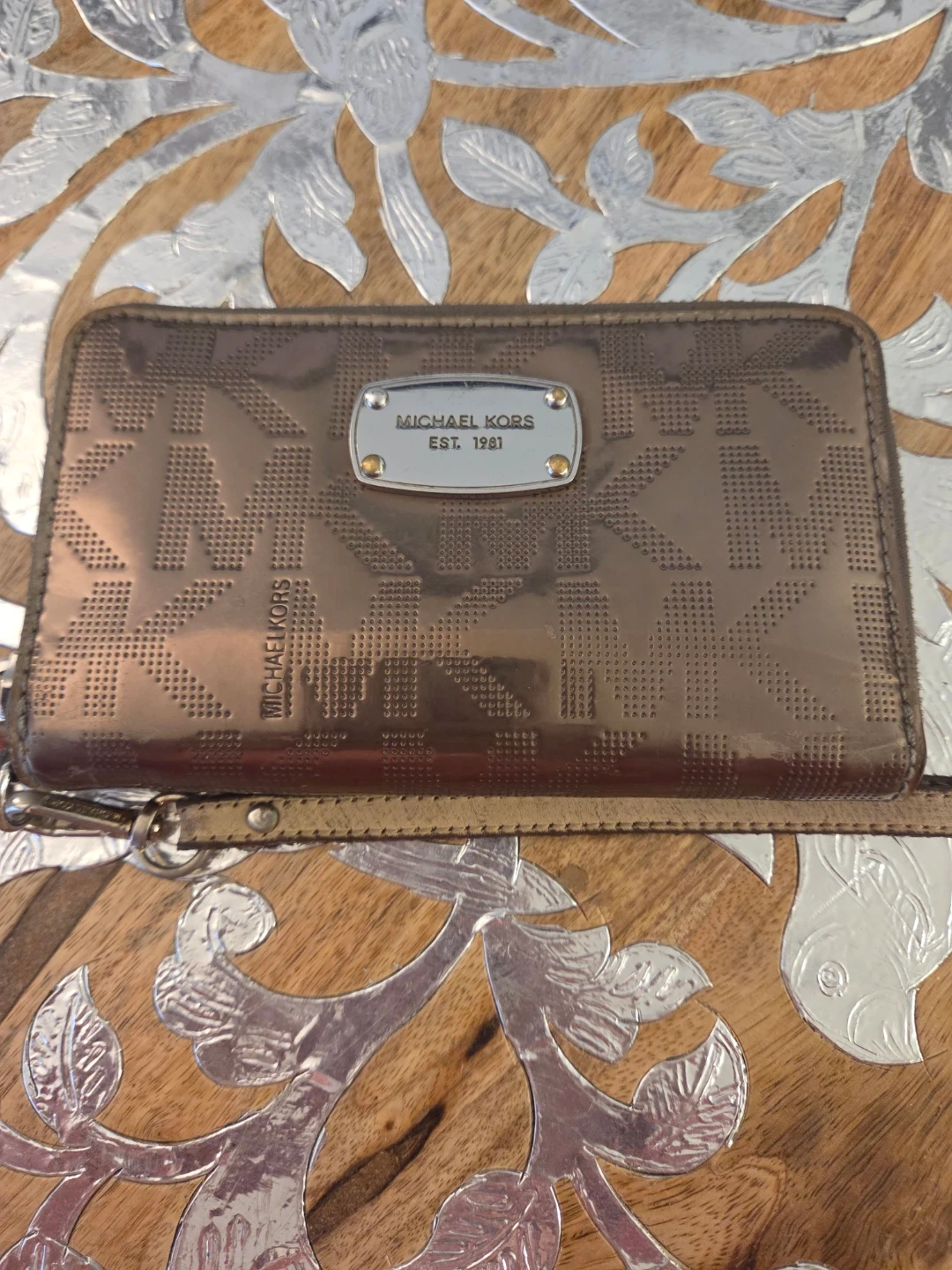 Buy & SellMICHAEL KORS Bronze/Gold WristletMICHAEL KORS Bronze/Gold Wristlet$10MICHAEL KORS Bronze/Gold Wristlet *Note - small tear in fabric on inside- see last picture*ConditionGoodWHERE TO MEETCheck LocationView MapSELLERKarenSilver Hills603 reviews0 chats·1 favorites·28 viewsSEND CHAT TO SELLERHi Karen! I’m interested in your listing.Hi Karen! I’m interested in your listing.Get the Karrot app to chatSign In to chat