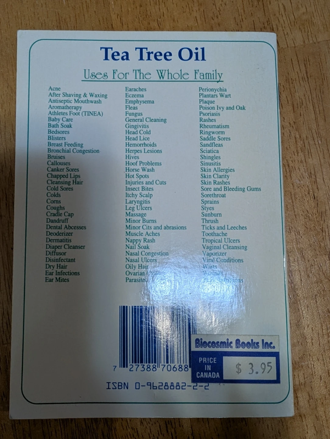 This booklet provides 101 uses for tea tree oil, covering conditions and suggested treatments for the whole family. It details applications for common ailments and personal hygiene. Copyright 1991. 31 pages