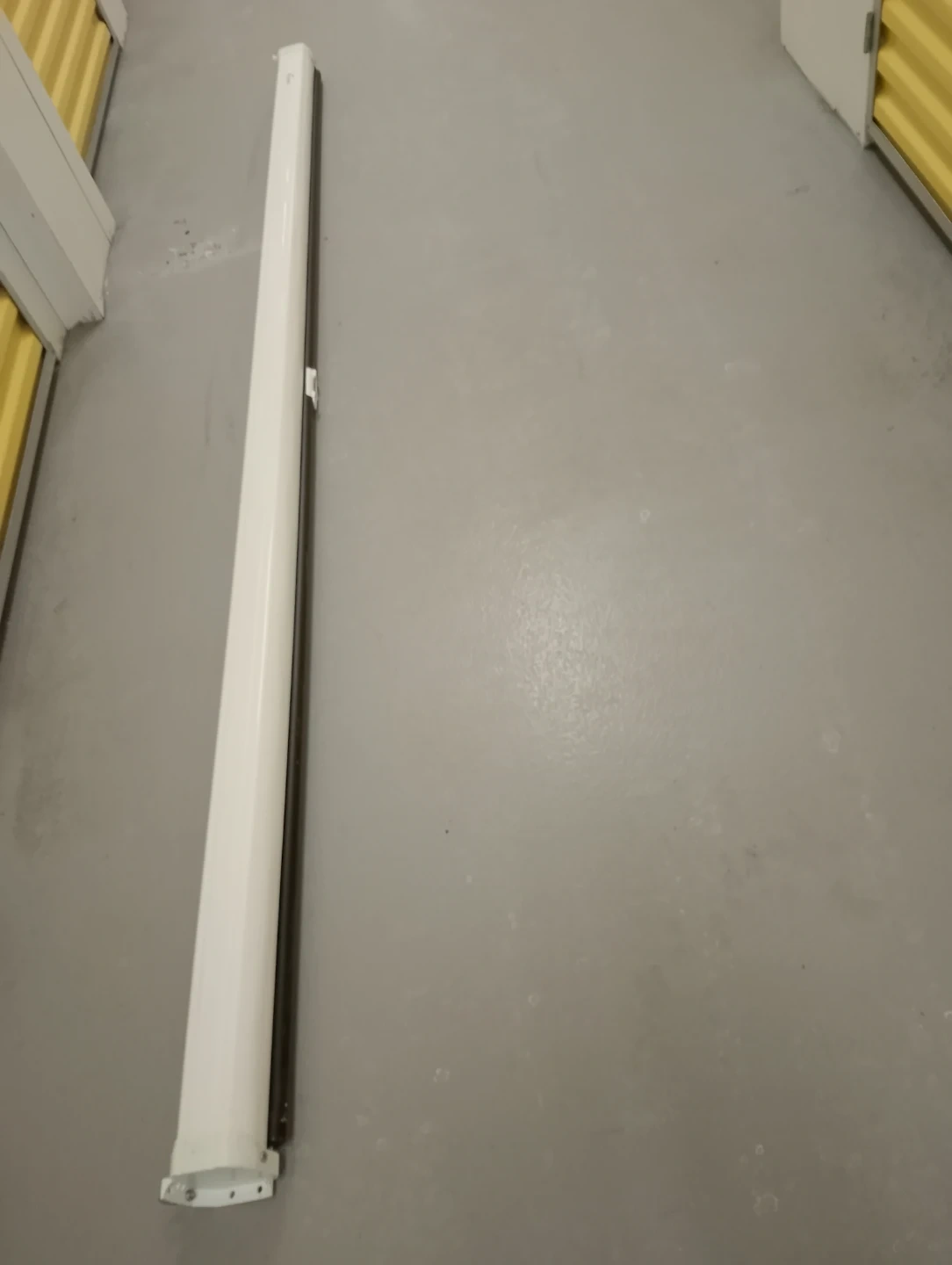 This is an Elunevision Vision 200 projector screen. It's white with a black trim. The screen material is suitable for home theatre viewing.