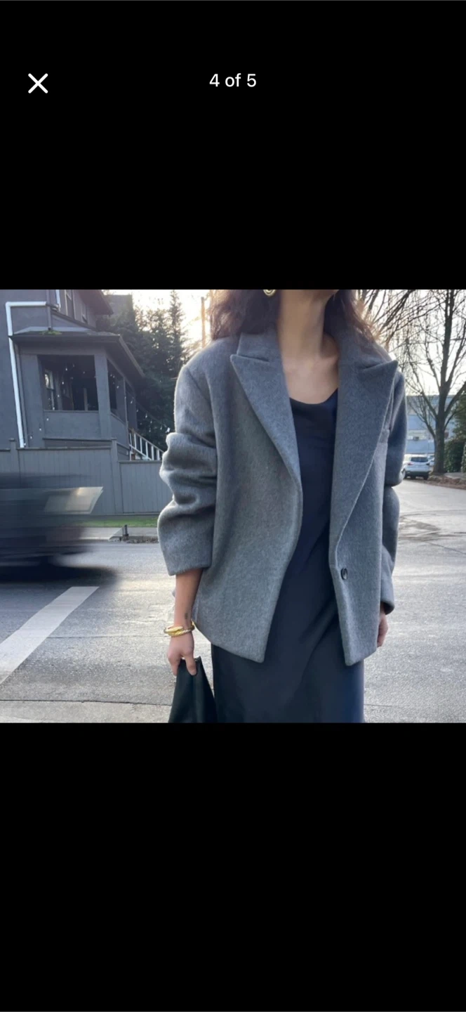 This short wool blend jacket is made in an oversized fit with a peak lapels, welt pocket details and a single button closure. An essential to own this season, wear yours over all yours looks.