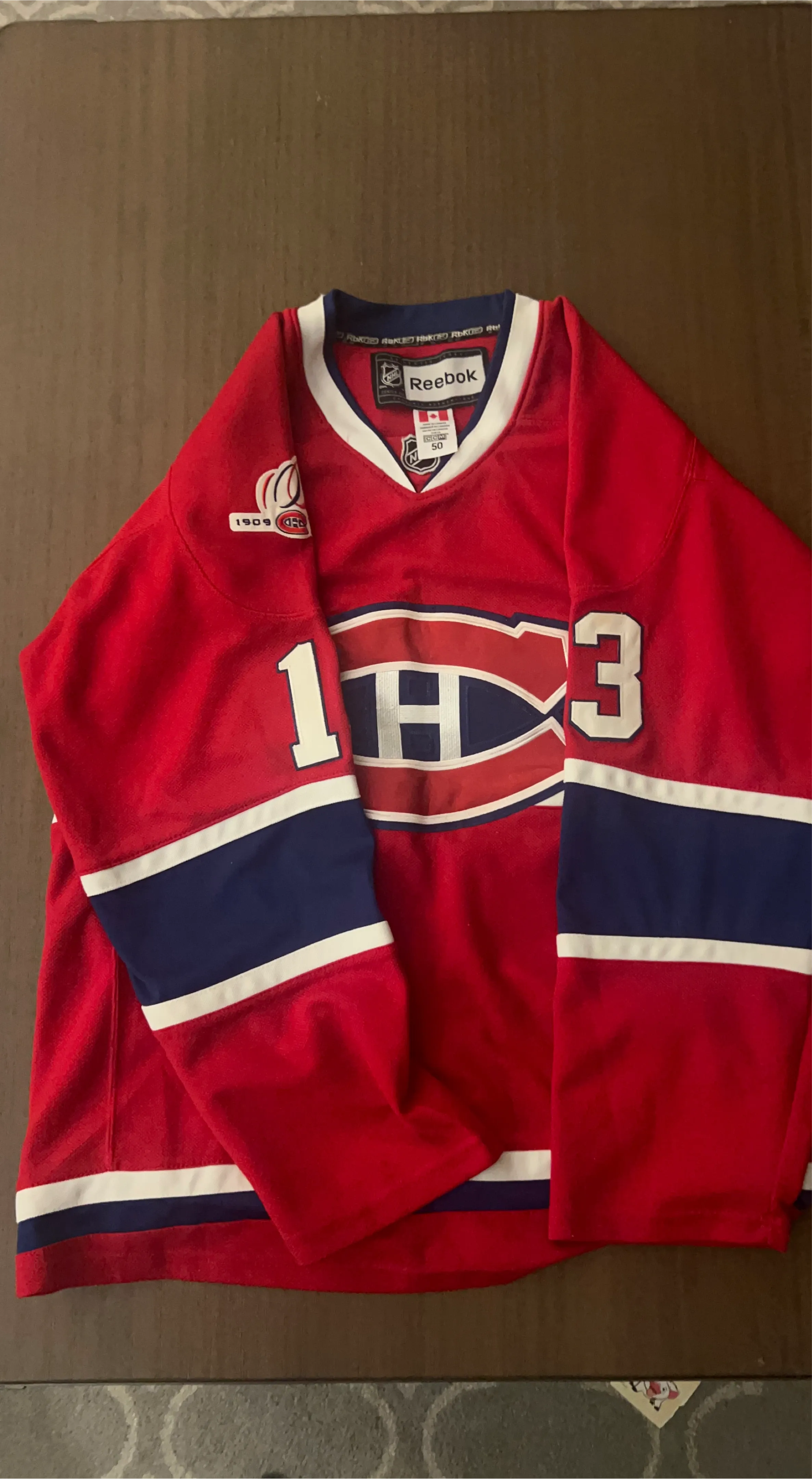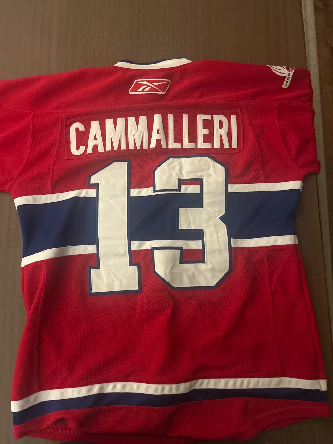 This is a red Reebok Montreal Canadiens hockey jersey featuring Cammalleri and the number 13. It has the team's iconic "CH" logo on the front and an "A" for alternate captain. A classic jersey for any hockey fan! Smoke free home.