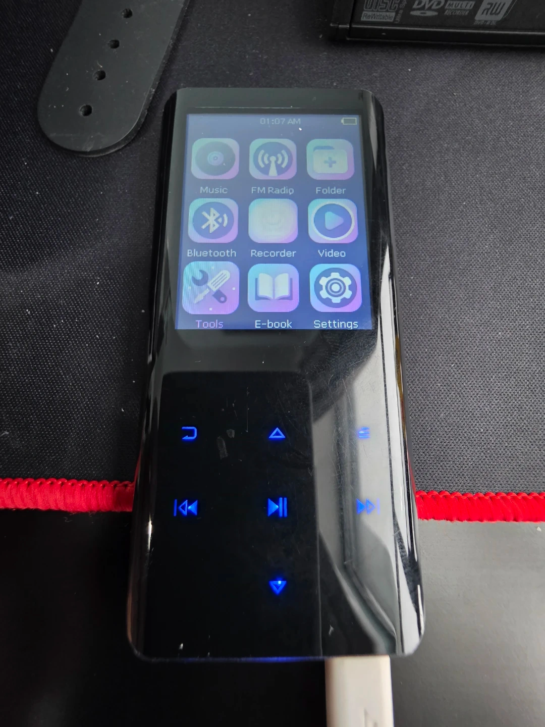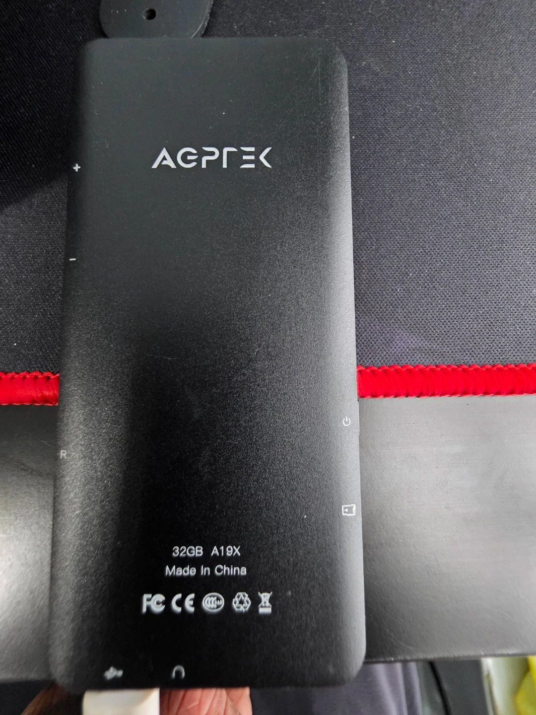 This is an AGPTEK 32GB A19X MP3 player. It supports music, FM radio, video, and e-books. The device also has Bluetooth connectivity.