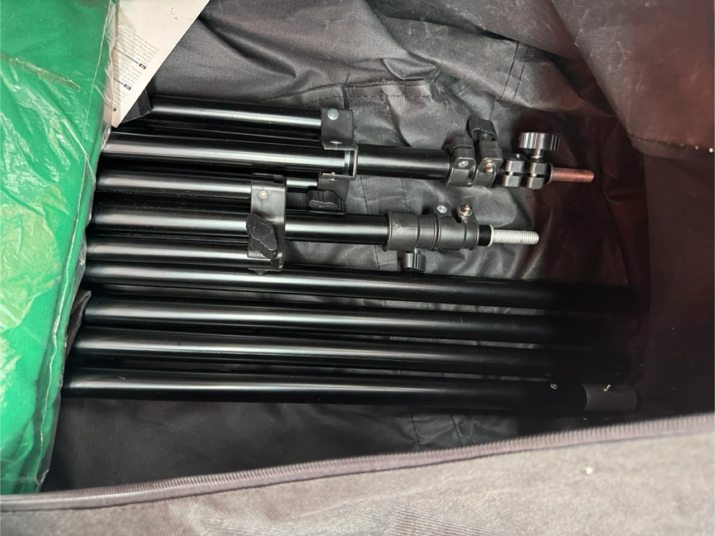 This Craphy kit includes a lighting stand and several backdrops. It's great for photo shoots. Stand is made of durable metal. Just the backdrop with the green screen, white background, black background. Plus a couple others I bought.