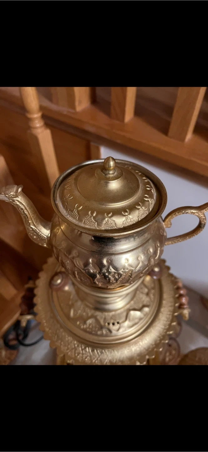 Decorative Brass Samovar Set with Pitcher and Bowl