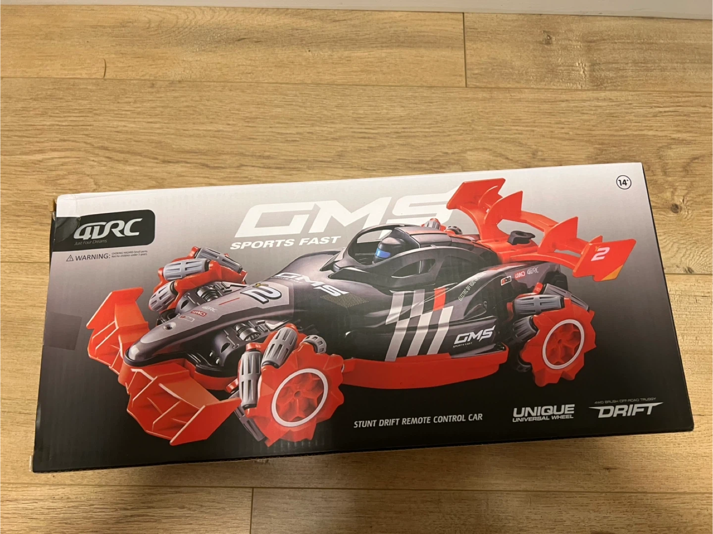 This is a GMS sports fast stunt drift remote control car. It features universal wheels for unique drifting action. The car comes in a sealed box.