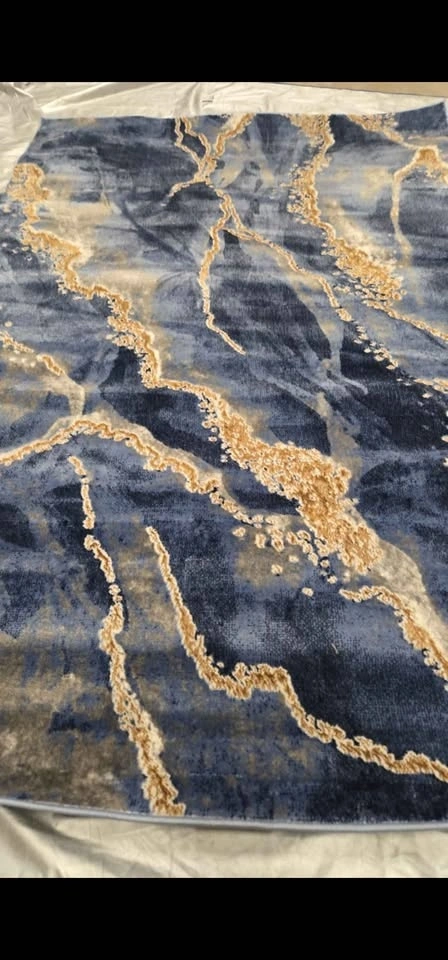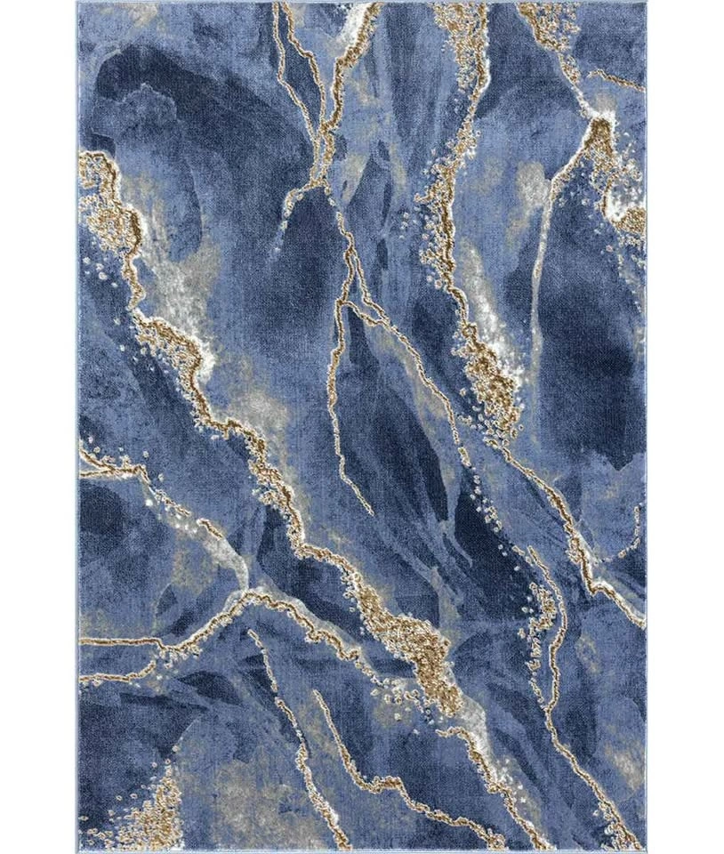 5x7 Jasperd Abstract Polypropylene Rug in Blue/Gold