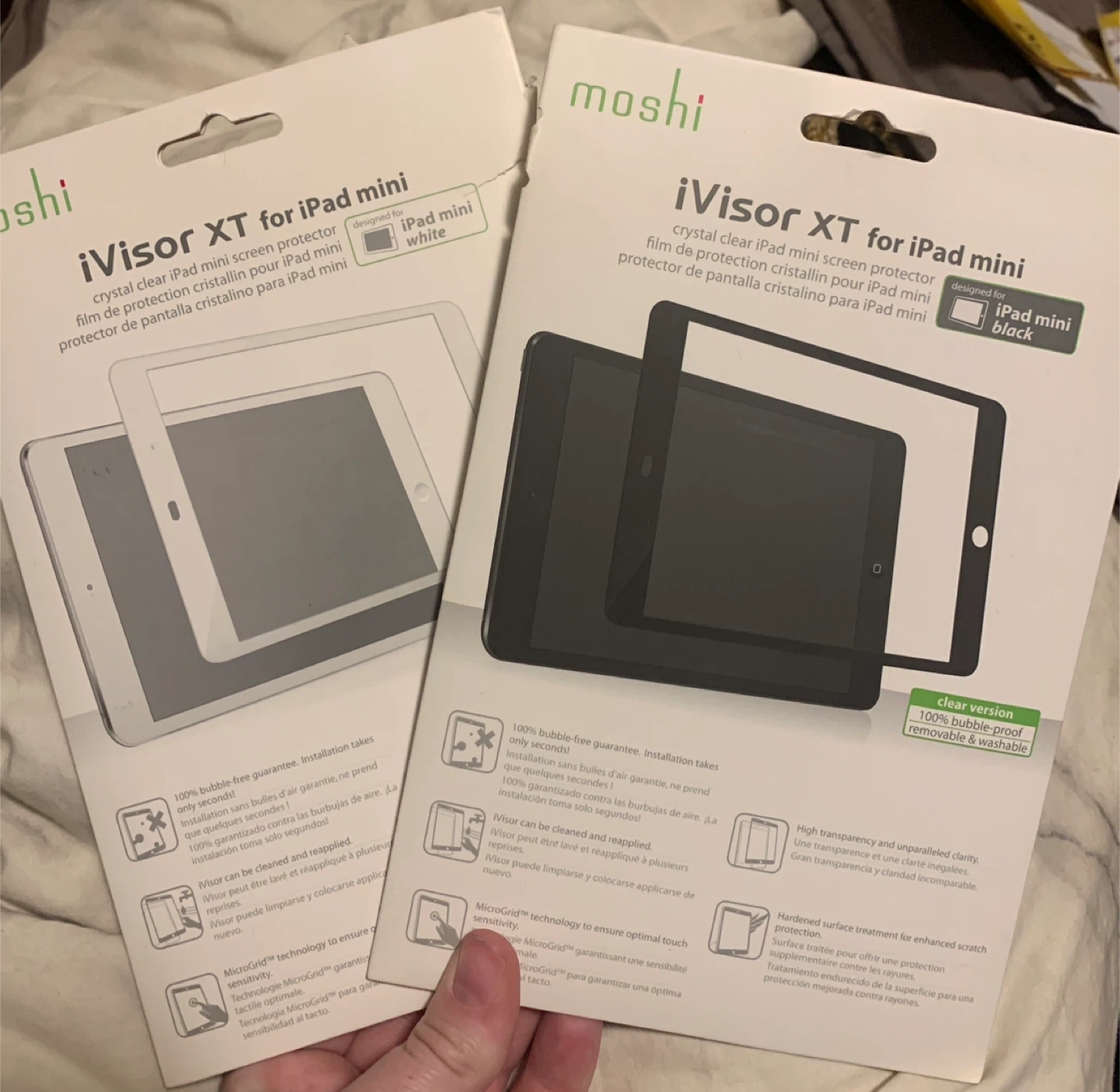 Crystal clear screen protectors for iPad mini. These are 100% bubble-free and can be cleaned and reapplied. They offer high transparency and enhanced scratch protection. Designed for the iPad mini. I have two of them