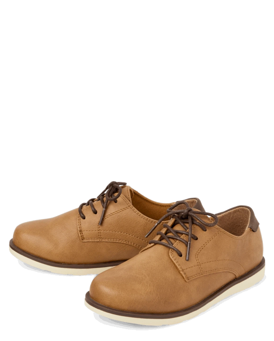 Stylish tan Oxford dress shoes, perfect for any formal occasion. These shoes feature a classic lace-up design and durable construction. They're suitable for anyone looking to complete a sharp outfit. FABRICATION: 100% faux leather upper, 100% tricot lining, 51% recycled TPR/49% TPR outsole, imported