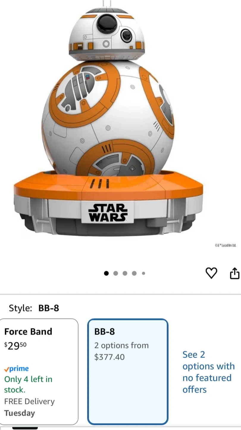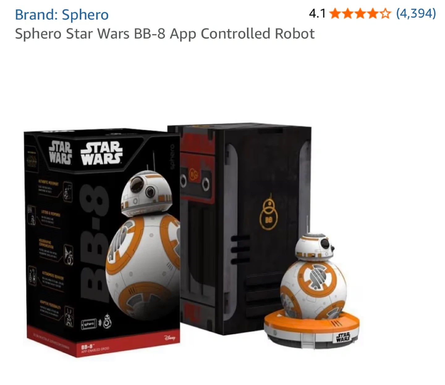 This is the Star Wars BB-8 droid by Sphero. It's app-enabled and comes with its charging base This droid is ready for adventure!