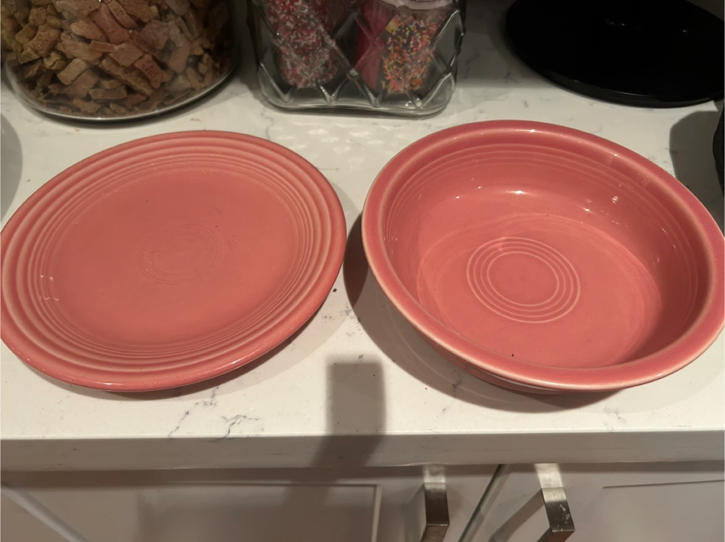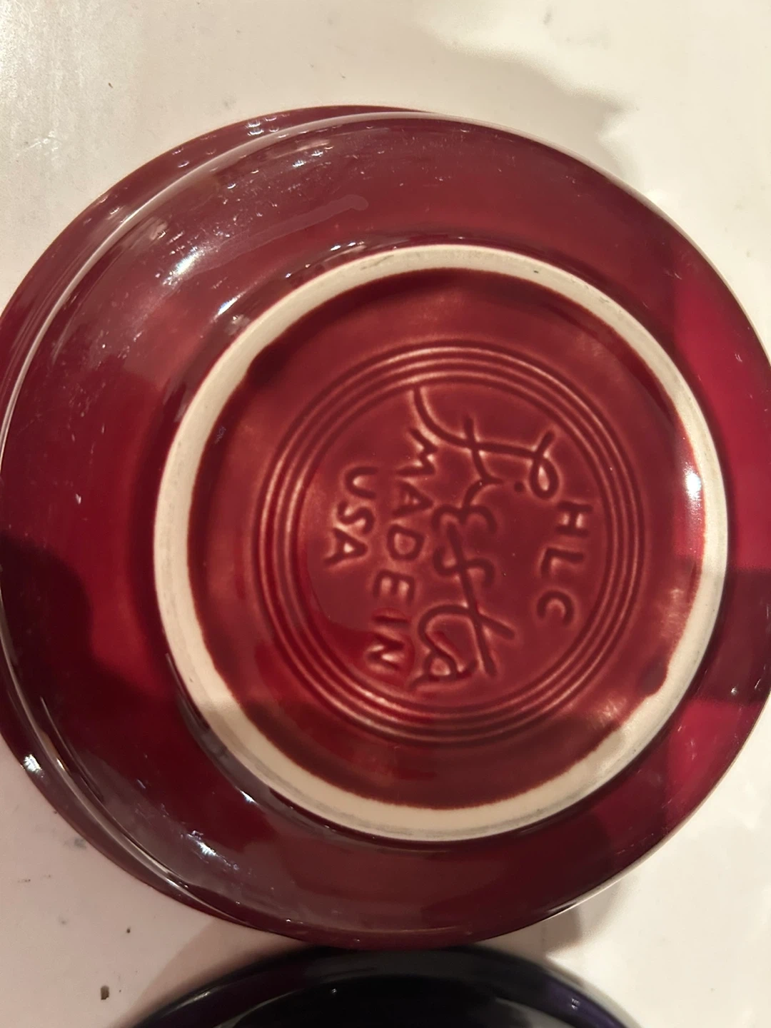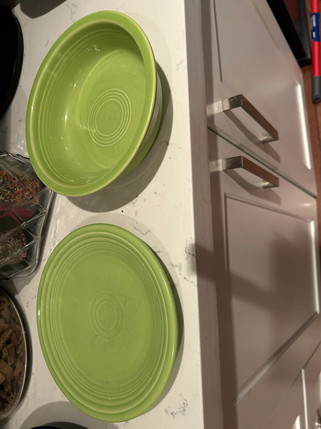 This is a set of Fiesta Homer Laughlin plates and bowls. They are made in the USA. This durable ceramic tableware is lead-free.price is for each piece. YELLOW AND GREEN SOLD