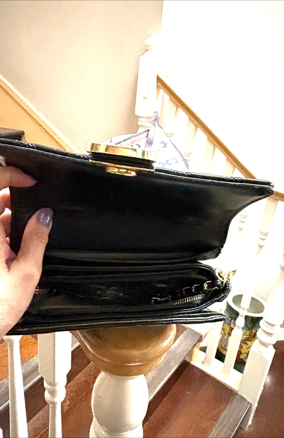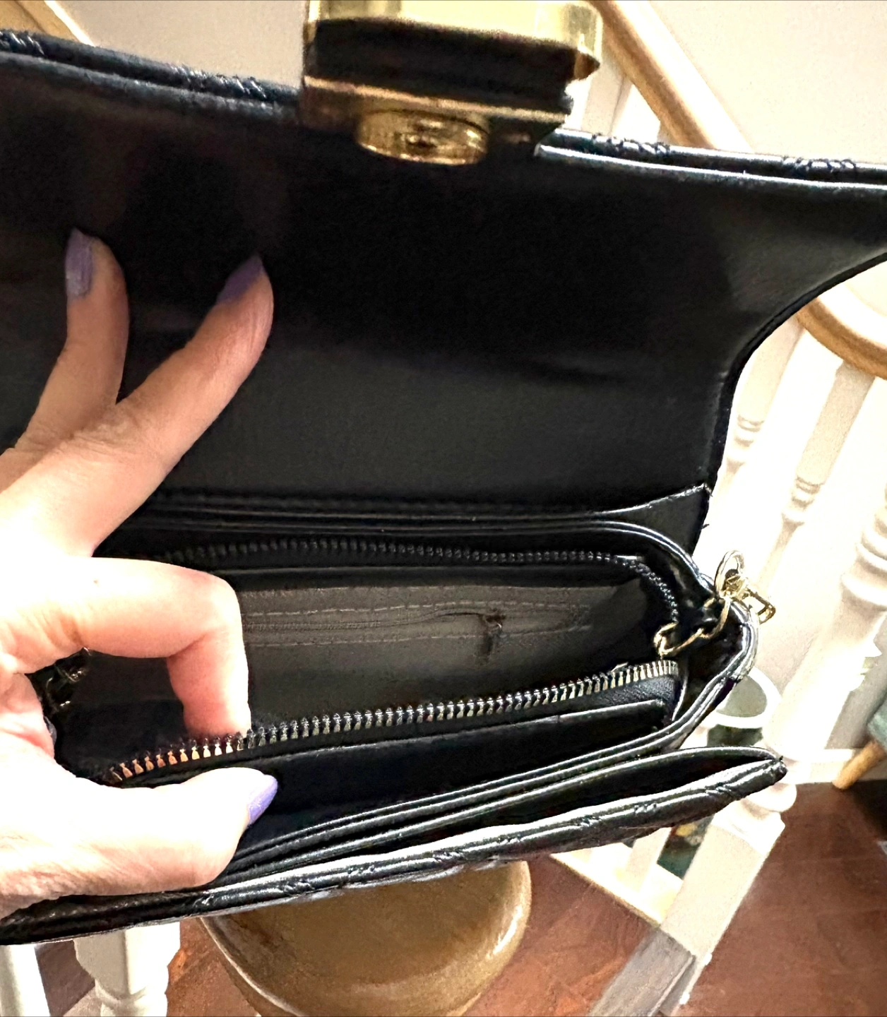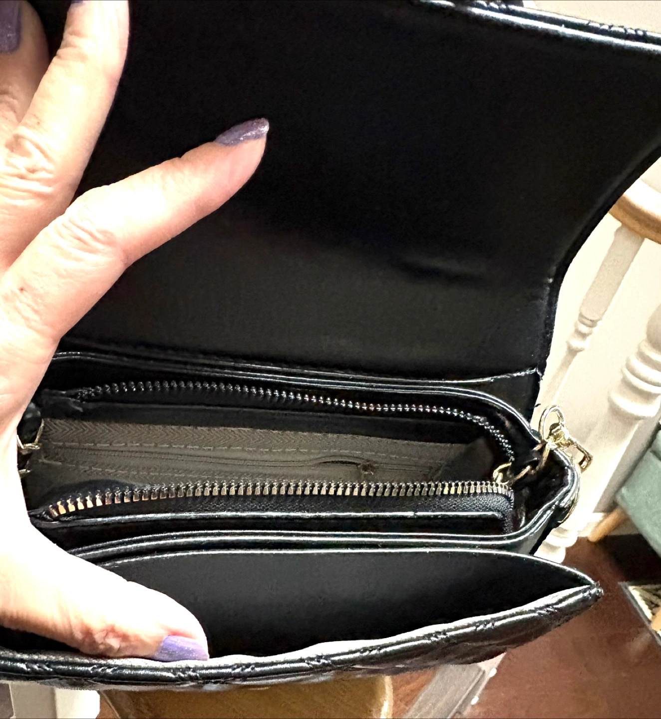 It features a secure clasp closure , an interior zippered pocket and a few separate compartments for organizing your stuff.