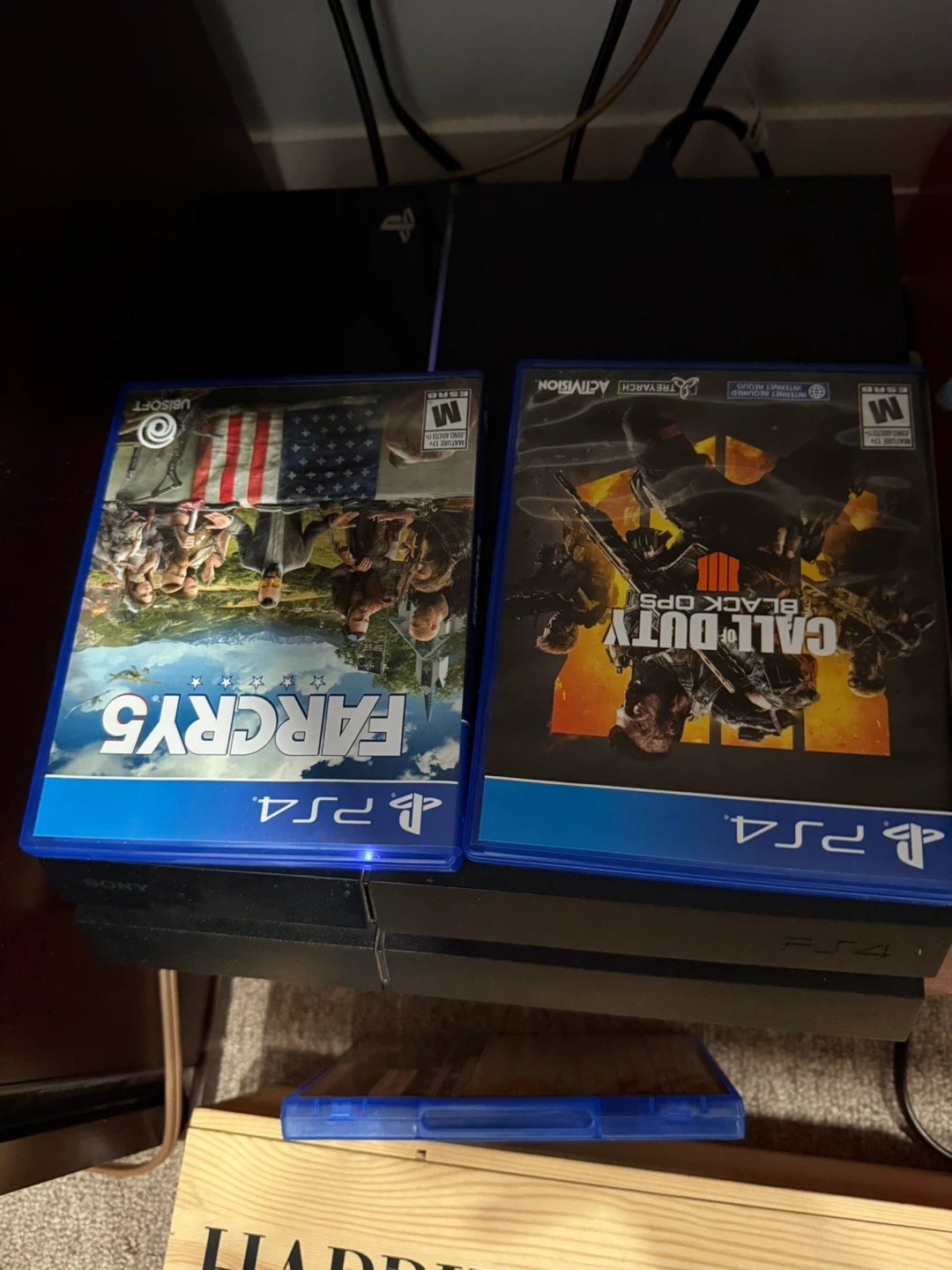 Sony PlayStation 4 Pro console. Includes two controllers and two games: Far Cry 5 and Call of Duty: Black Ops 4. Great for gaming enthusiasts!