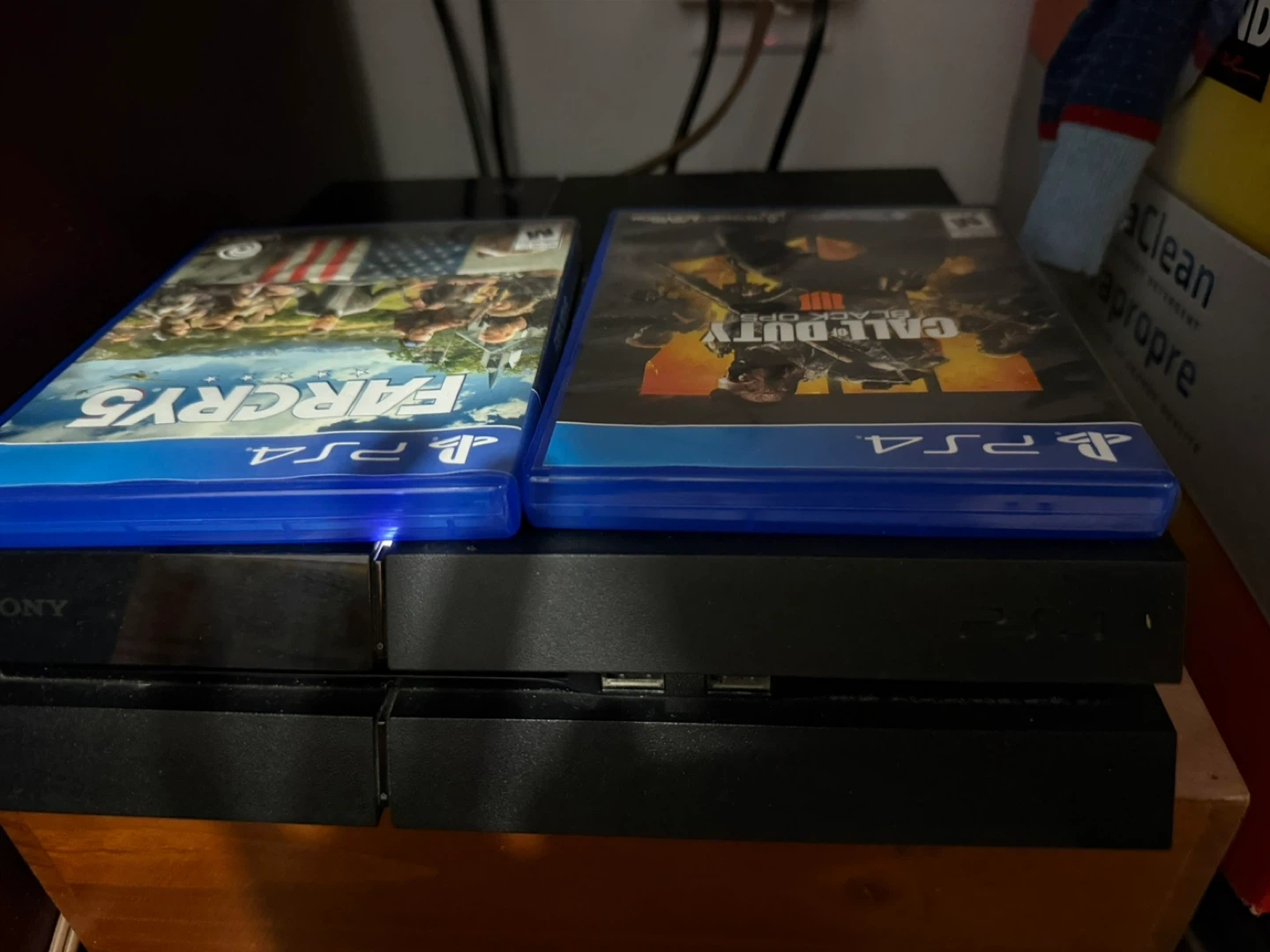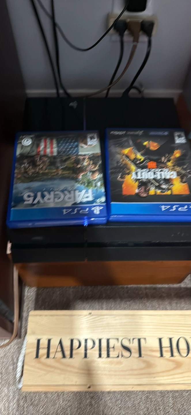 Sony PlayStation 4 Pro console. Includes two controllers and two games: Far Cry 5 and Call of Duty: Black Ops 4. Great for gaming enthusiasts!