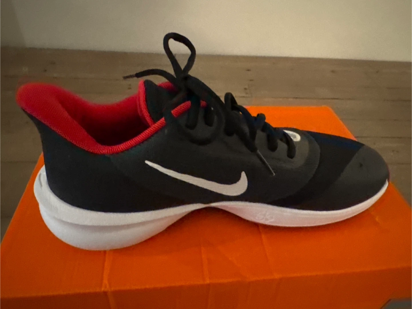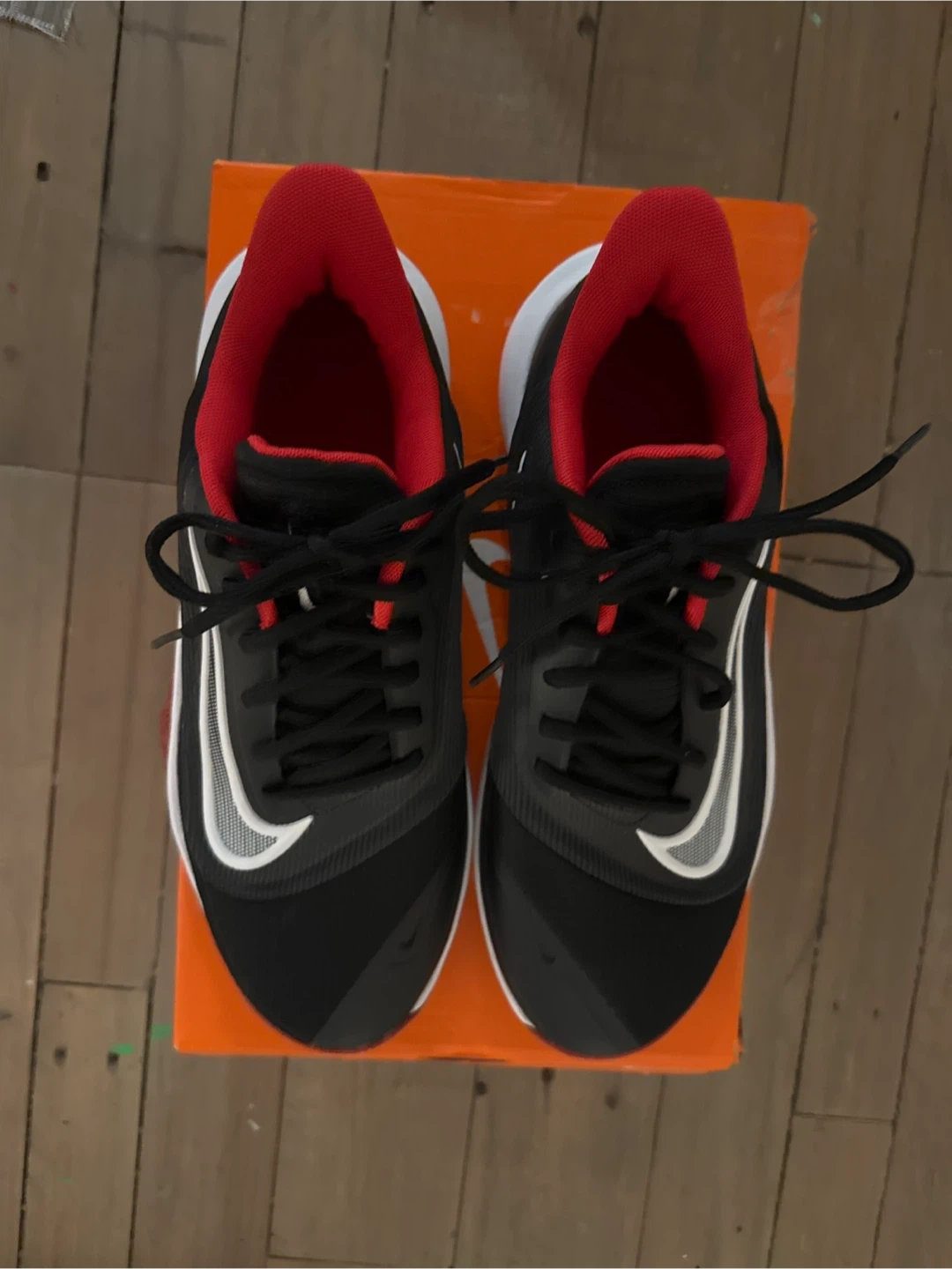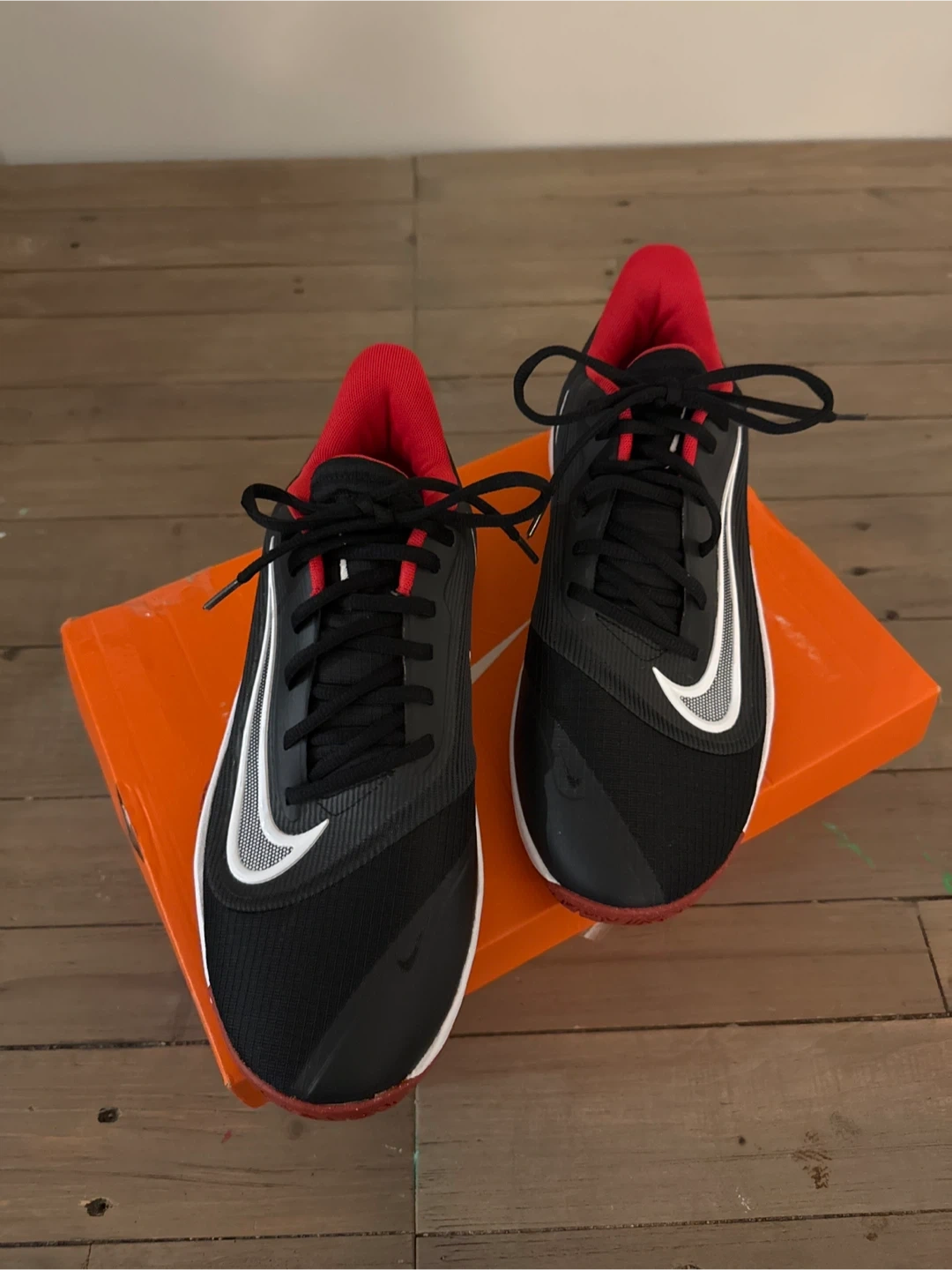 These are Nike Precision VII basketball shoes in black, white, and university red. They're a men's size 9.5 (UK 8.5, EUR 43). Includes the original box. These shoes are designed for performance on the court!