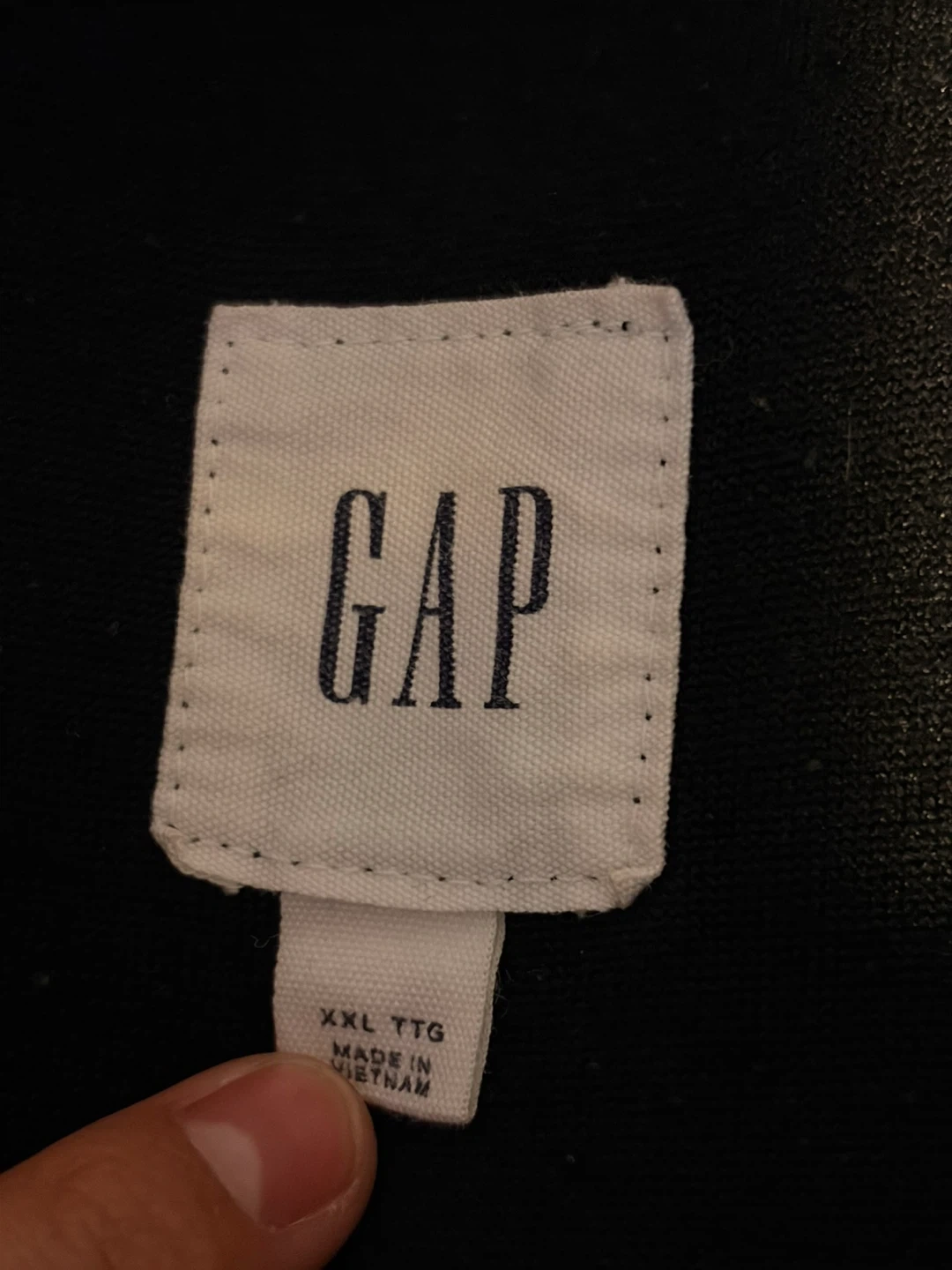 This is a black fleece half-zip jacket from GAP. It's a size XXL and made in Vietnam. The fuzzy material is cosy!