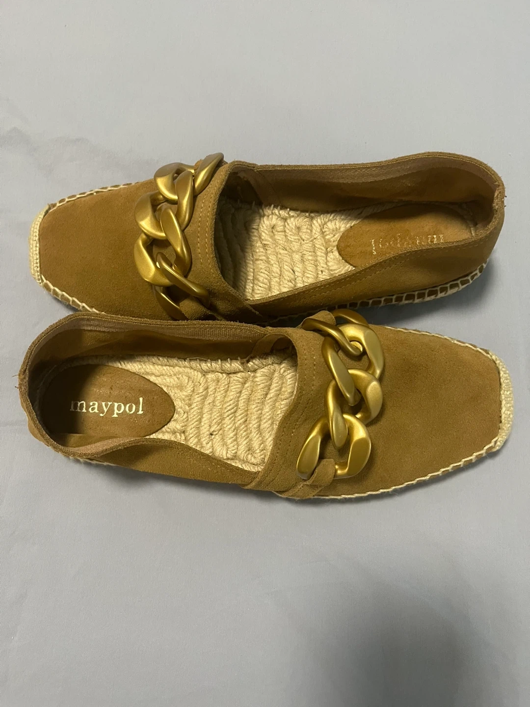 Buy & SellWoman’s Espadrille LoaferWoman’s Espadrille Loafer$45Impeccable Condition Light Brown Suede With Copper Rings (Embellishment) Made in SpainConditionLike newSize38 (7.5)BrandMaypol WHERE TO MEET1099 Richards StView MapSELLERverifiedDarraDowntown52540 reviews0 chats·0 favorites·7 viewsSEND CHAT TO SELLERHi Darra! I’m interested in your listing.Hi Darra! I’m interested in your listing.Get the Karrot app to chatSign In to chat