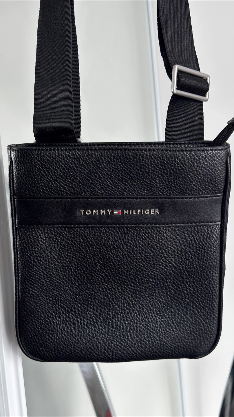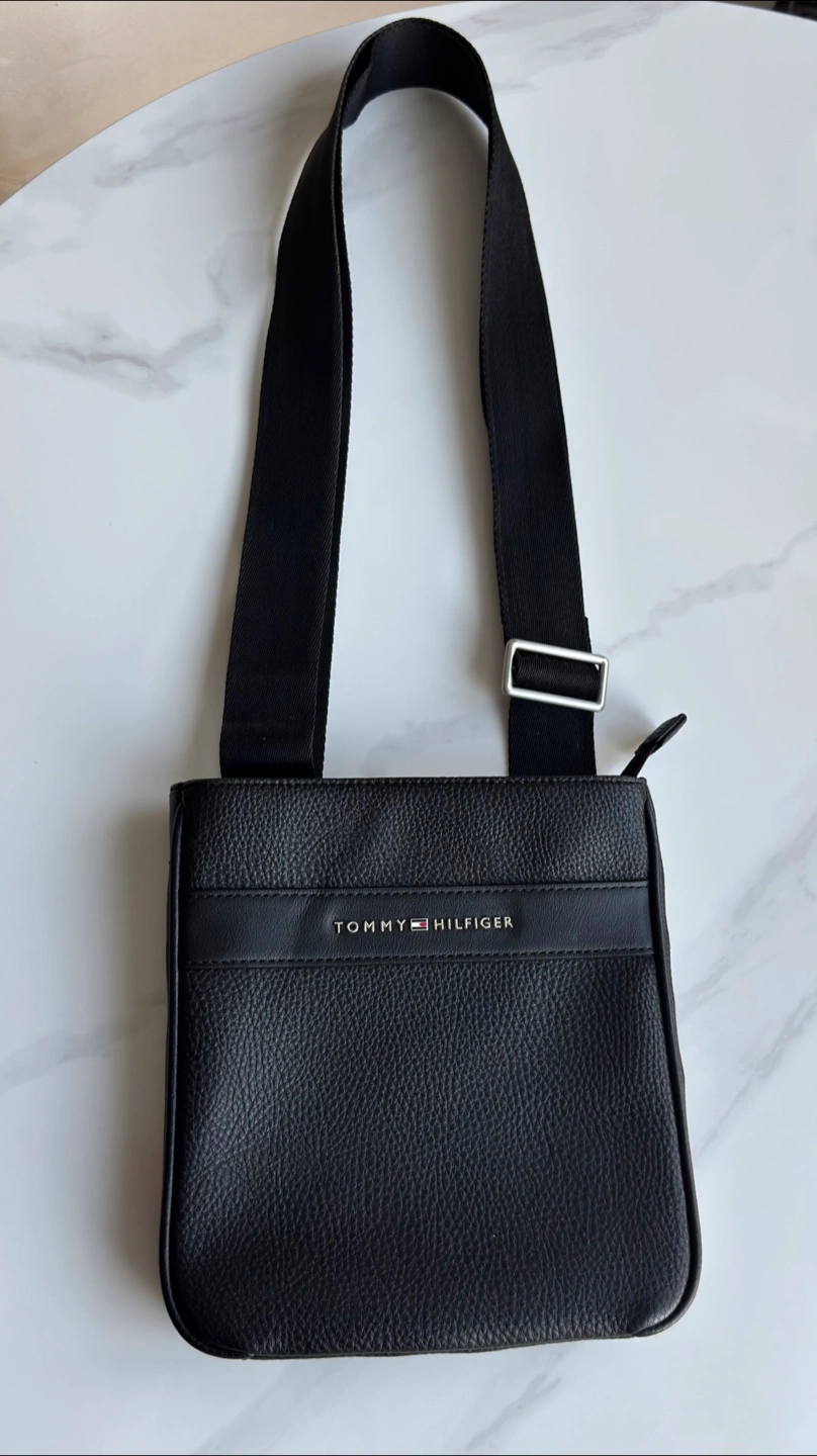 Tommy Hilfiger Borsello Tracolla Uomo TH Modern Mini Crossover Nero .Tommy Hilfiger crossbody bag in black pebbled faux leather. It features an adjustable strap and a main zippered compartment. This bag's compact size makes it handy for everyday essentials.