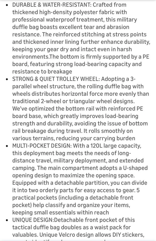 Buy & Sell(New) Rolling Duffle Bag with Wheels(120L Large)(New) Rolling Duffle Bag with Wheels(120L Large)$90Sealed brand new. Pick up at studio phenomenon 901 Atlantic Ave, Brooklyn 11238.WHERE TO MEETCheck LocationView MapSELLERverifiedChristineClinton Hill1614 reviews0 chats·0 favorites·14 viewsSEND CHAT TO SELLERHi Christine! I’m interested in your listing.Hi Christine! I’m interested in your listing.Get the Karrot app to chatSign In to chat