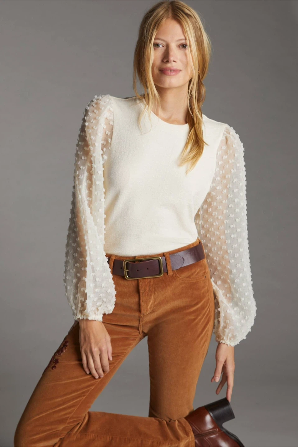 Maeve by Anthropologie Cream Swiss Dot Puff Sleeve Top - Medium