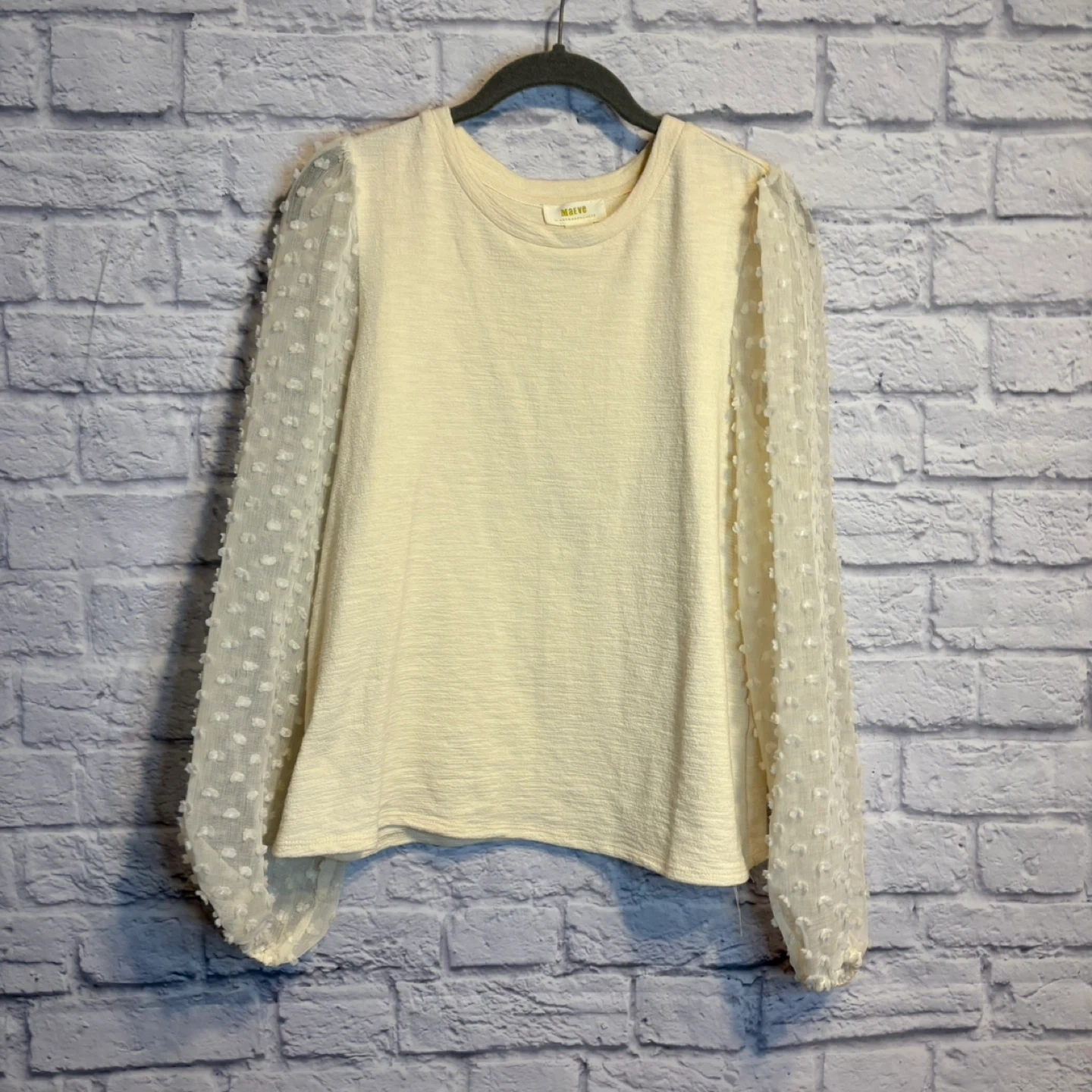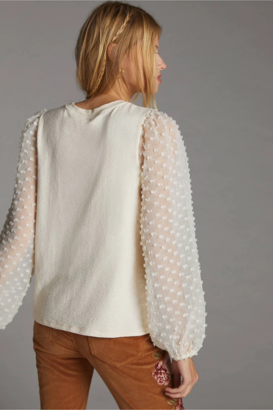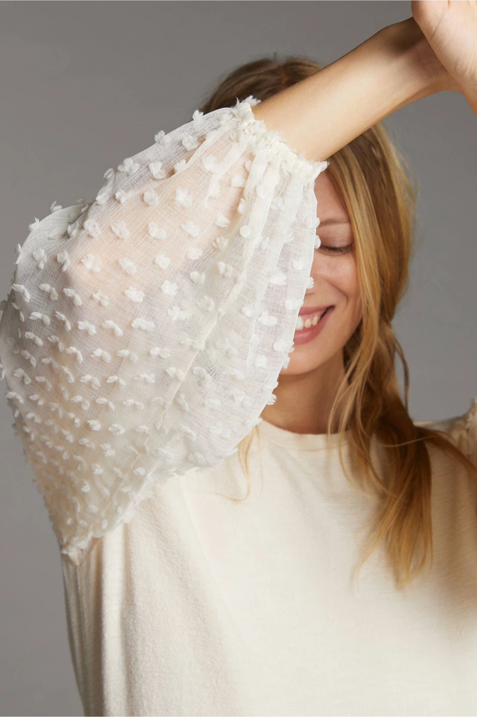 Maeve by Anthropologie Cream Swiss Dot Puff Sleeve Top - Medium