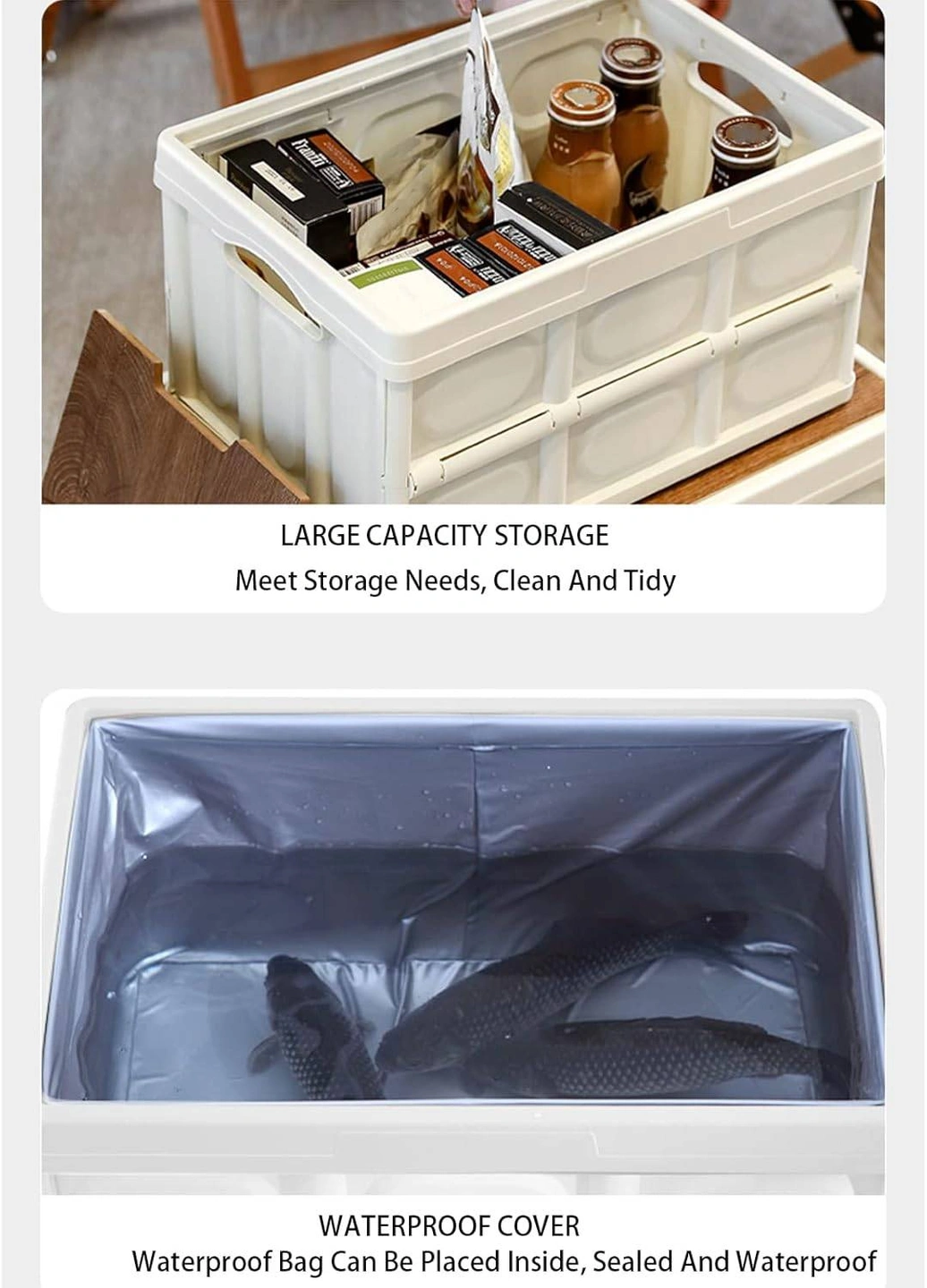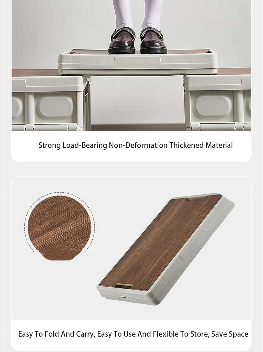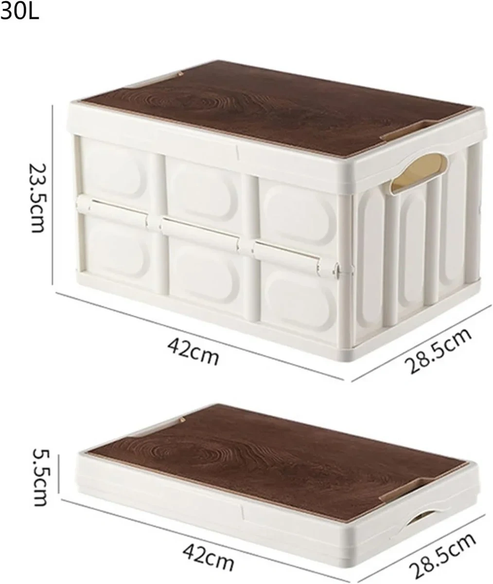 This folding storage box is perfect for keeping your space tidy! It's made of thickened PP material, making it strong and durable. The wooden lid adds a nice touch, and it's easy to fold and carry, so you can save space when it's not in use. It's also safe to use and non-toxic