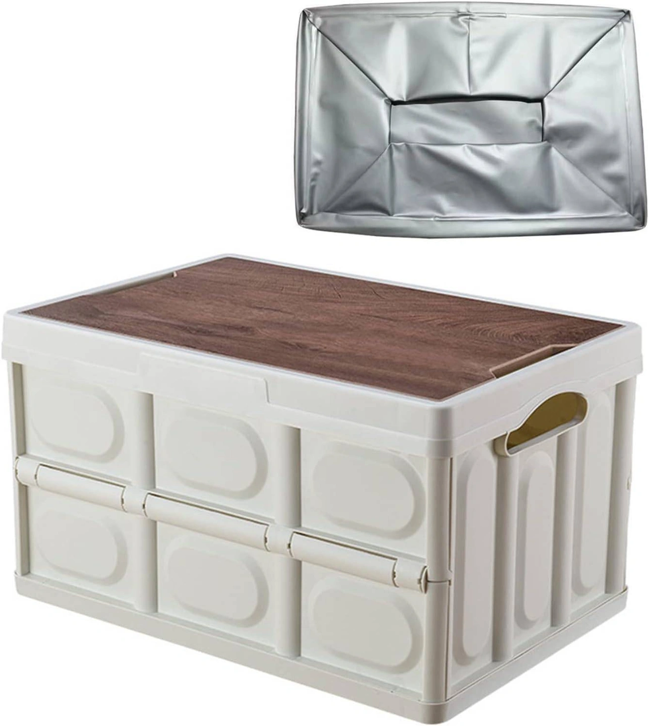 Folding Storage Box with Wooden Lid
