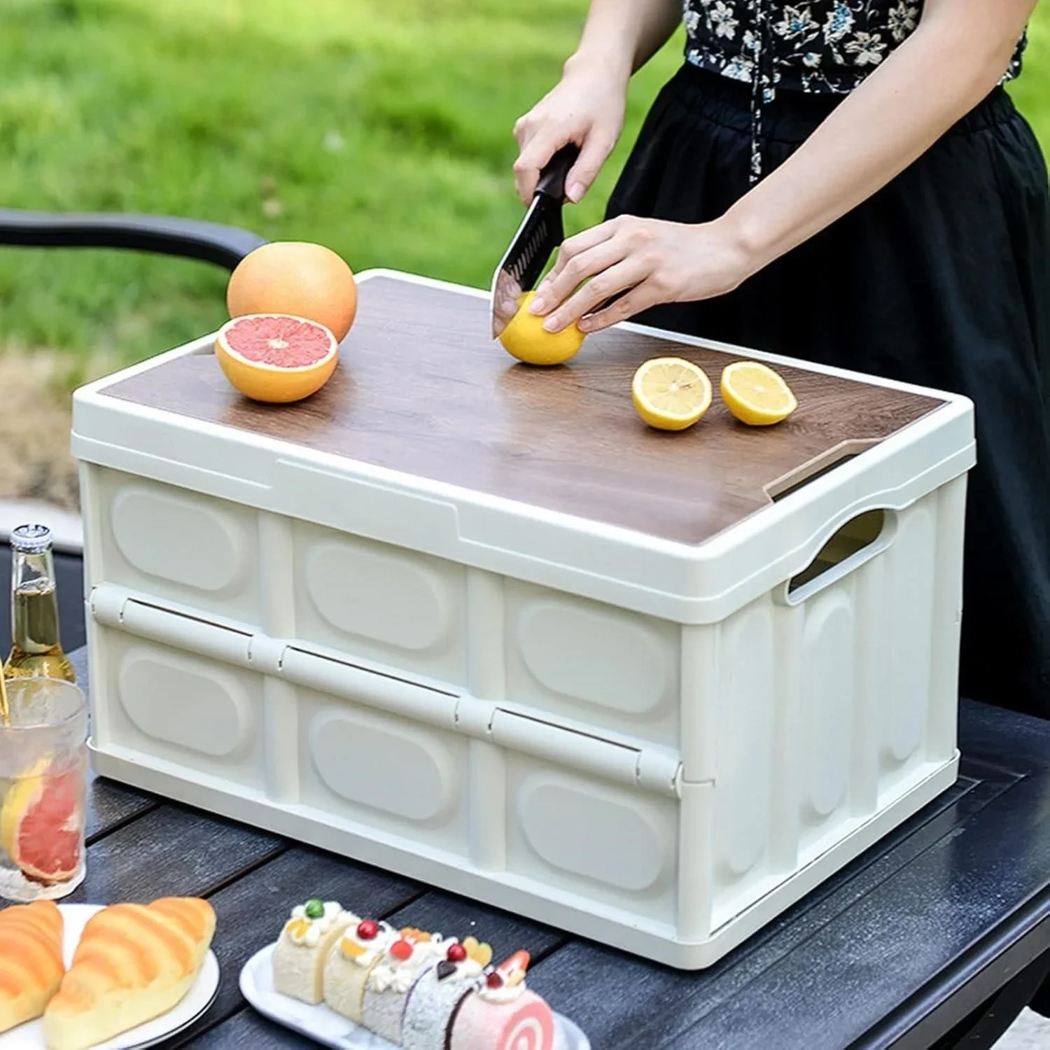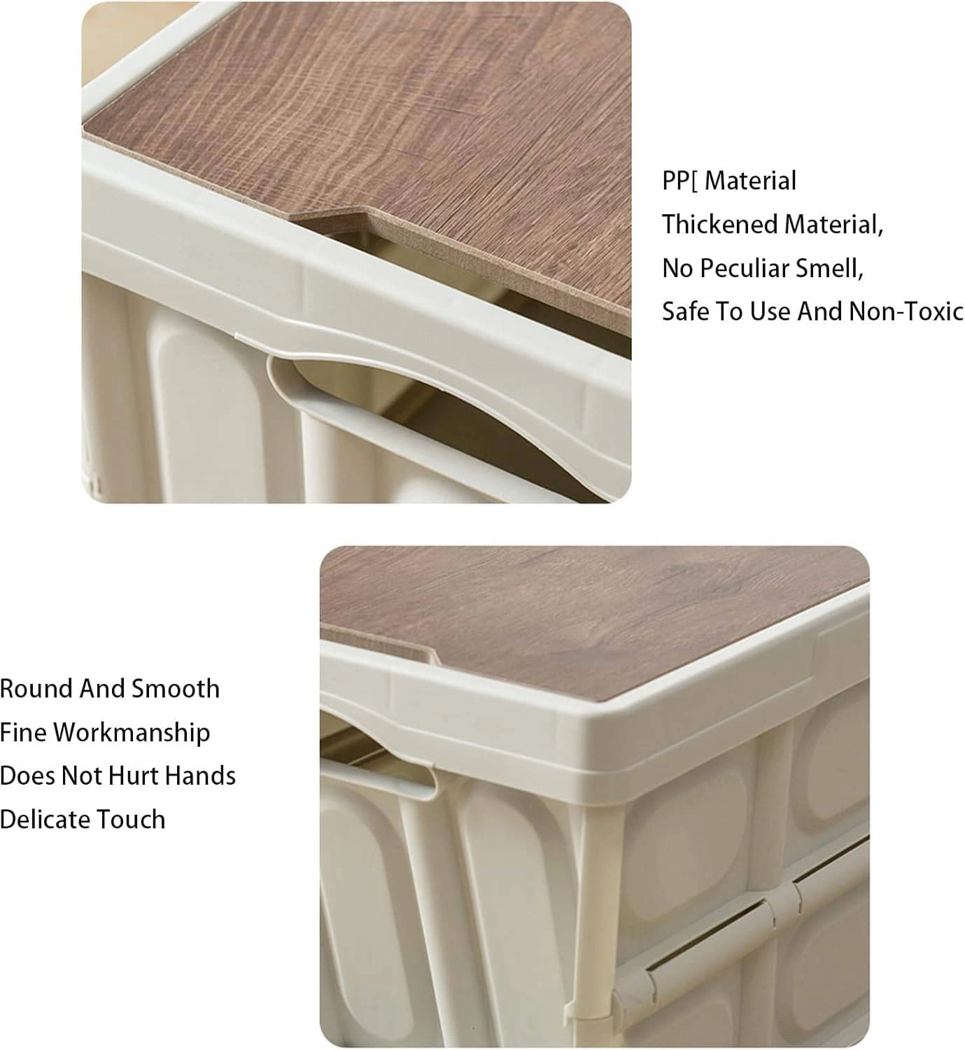 This folding storage box is perfect for keeping your space tidy! It's made of thickened PP material, making it strong and durable. The wooden lid adds a nice touch, and it's easy to fold and carry, so you can save space when it's not in use. It's also safe to use and non-toxic
