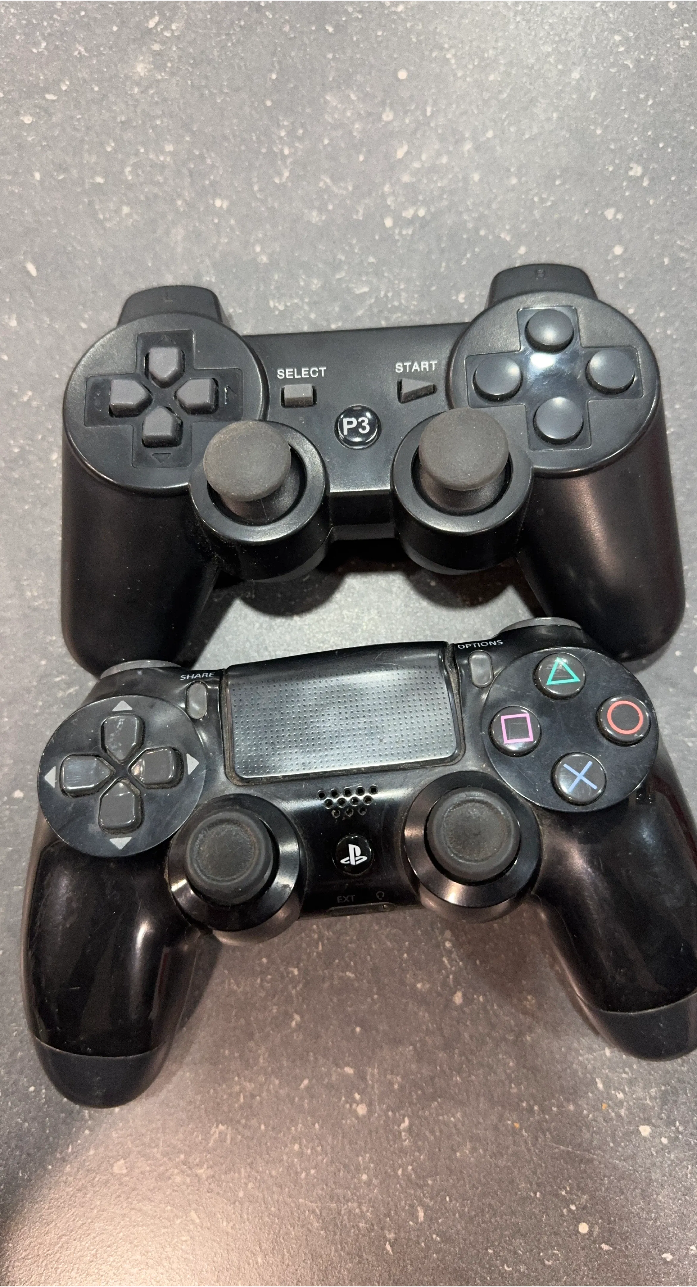 one black DualShock 3 controller and one black DualShock 4 controller (SOLD). Controller is wireless and in good used condition.