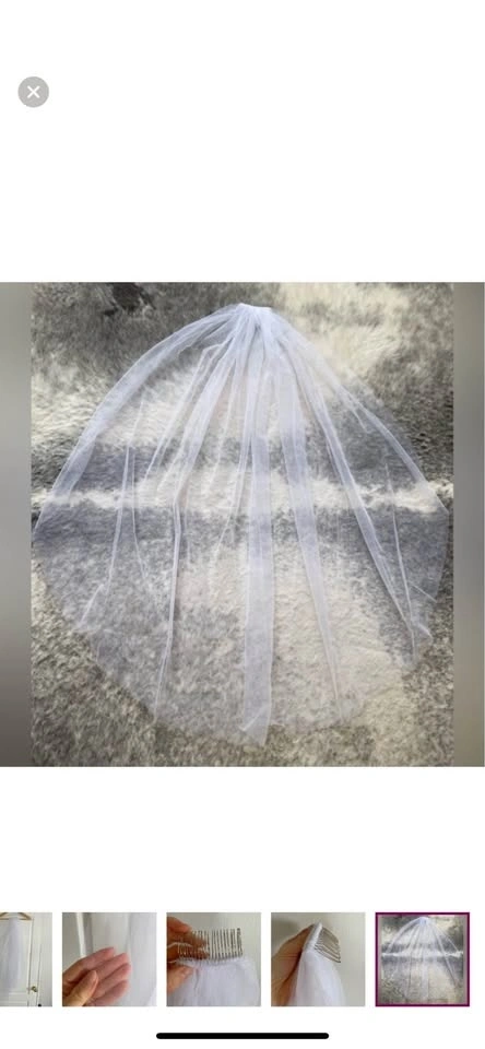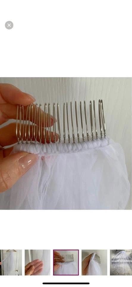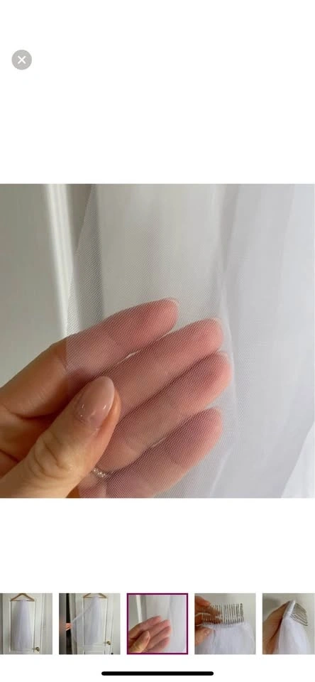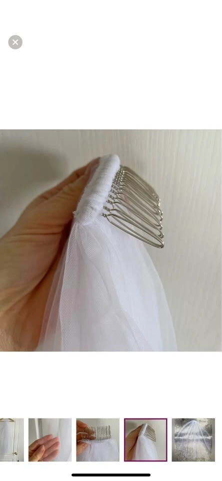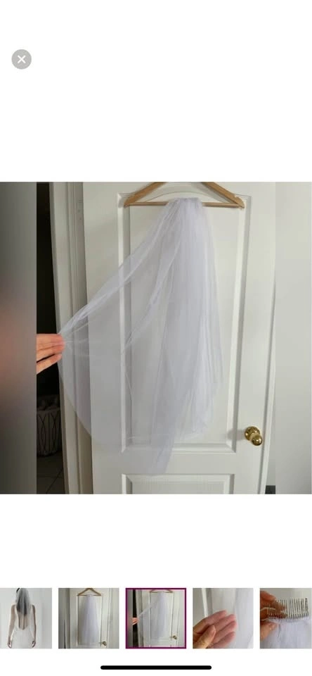 Elegant designer fingertip-length wedding veil in crisp white, featuring a clean raw edge finish for a modern, minimalist look. Crafted from soft, flowing tulle and includes a silver comb for secure, effortless styling. Purchased from a high-end bridal boutique but never used — it’s in flawless, new condition. Measurements: 62” W x 39” L — perfect for brides seeking a timeless veil that pairs beautifully with nearly any gown.