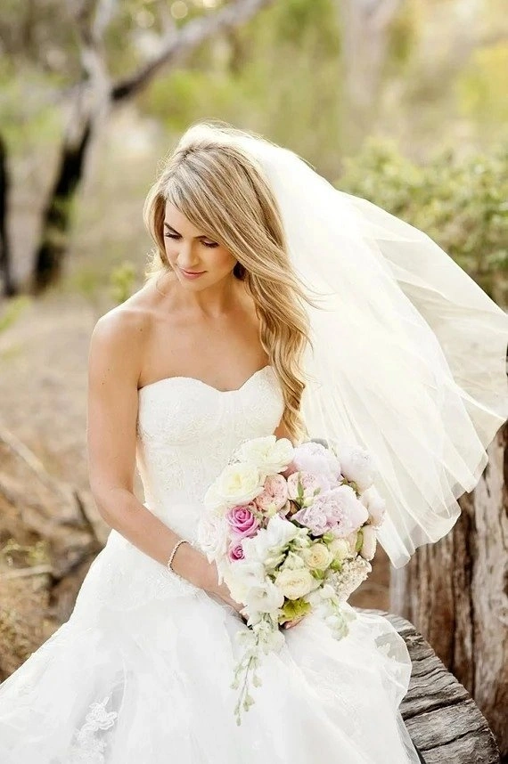 Designer White Fingertip Wedding Veil (Ivory)