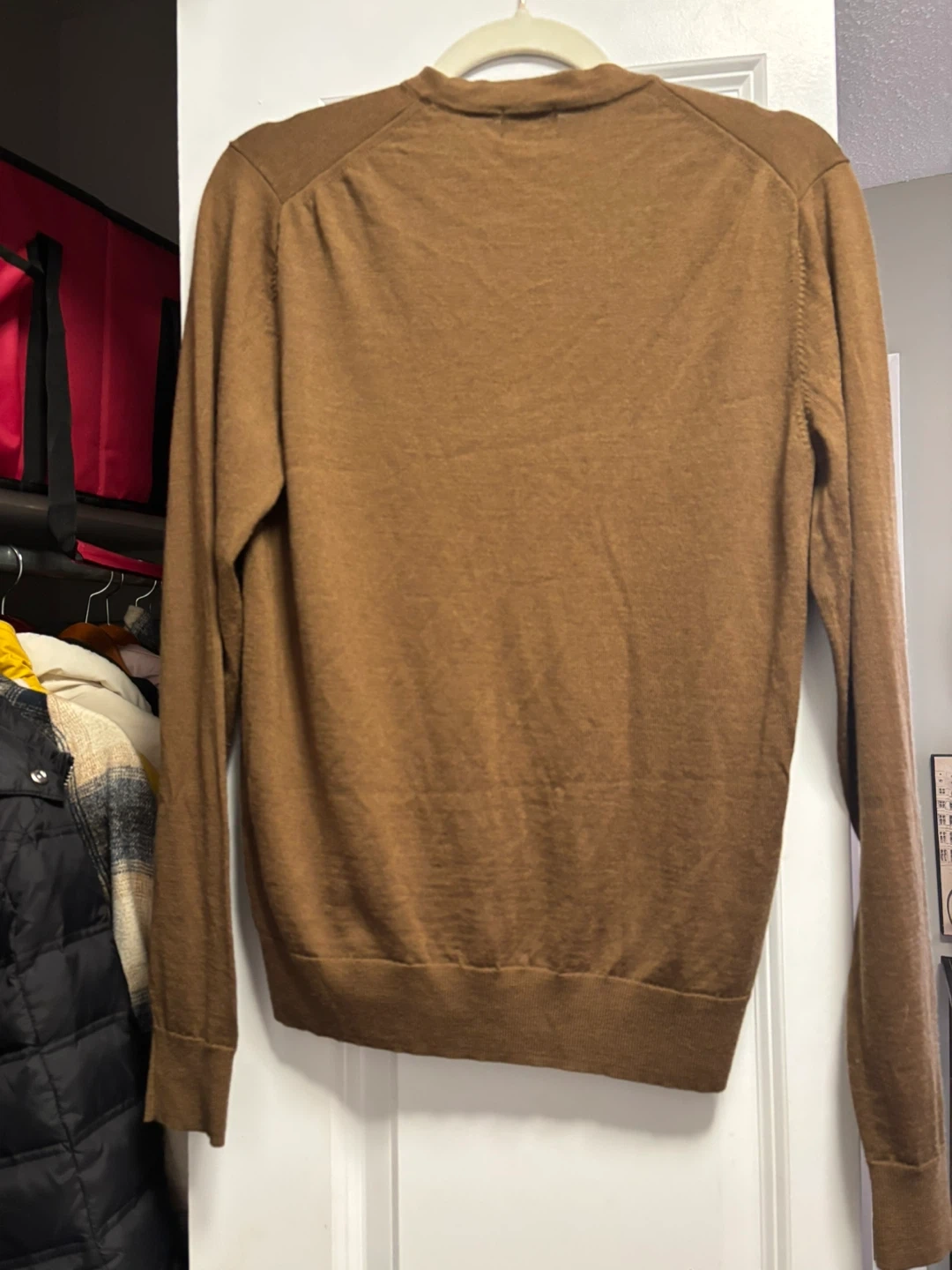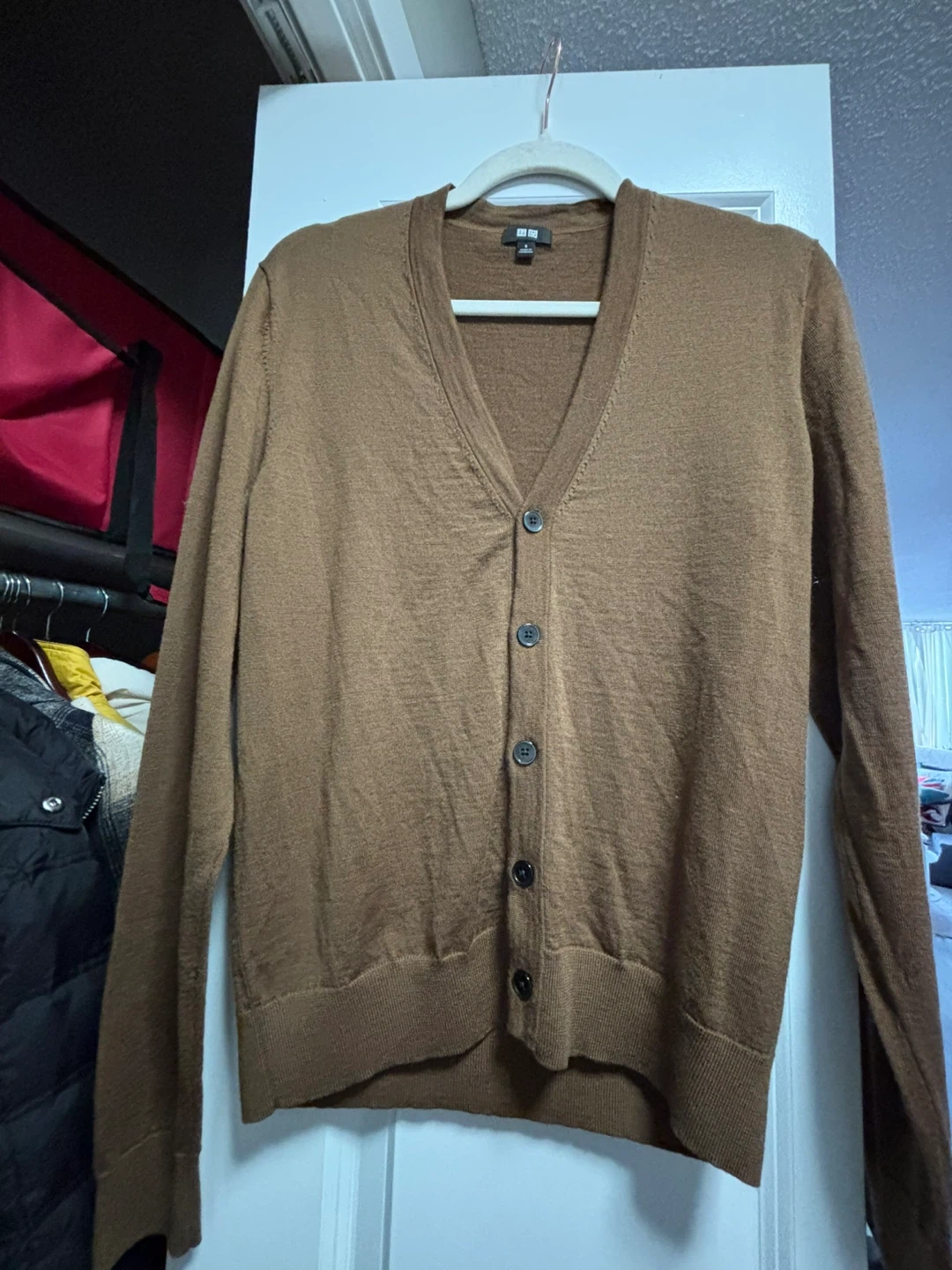 Uniqlo women's cardigan made from 100% wool. It's a size small in a rich brown colour. Button front closure.