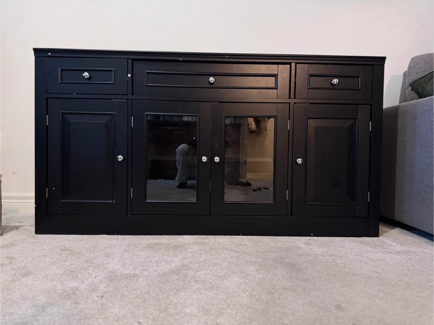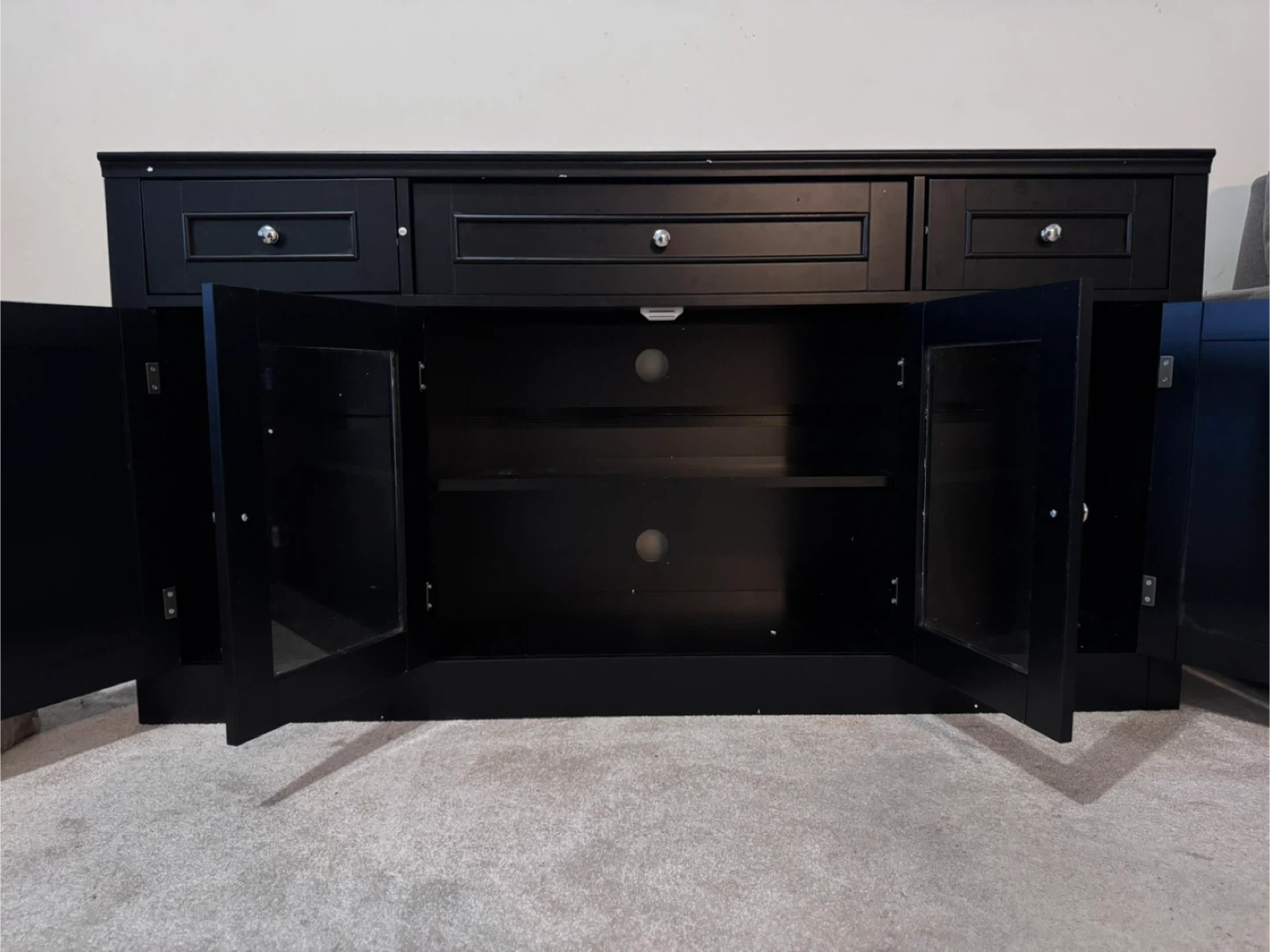 Black Media Console Cabinet with Glass Doors and Drawers
