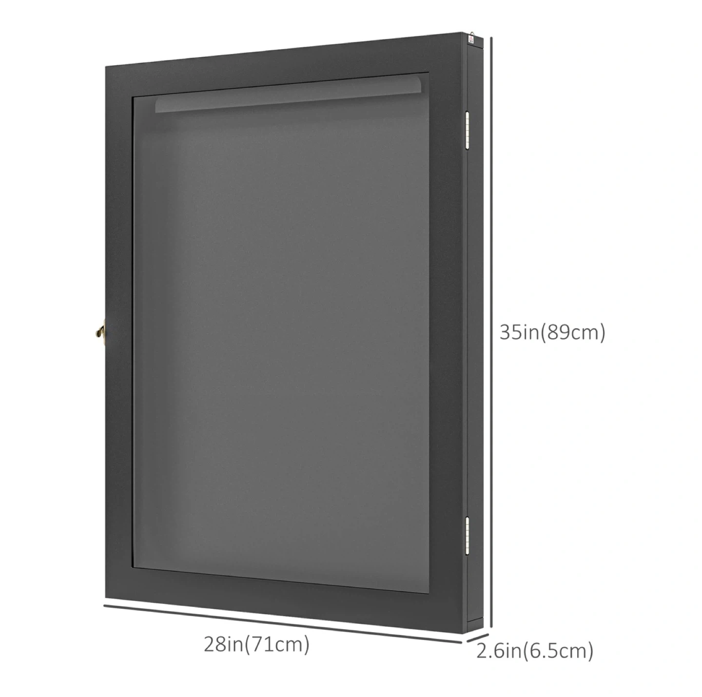 Brand New!!! Display case for sports jerseys and memorabilia. It's 28in (71cm) wide, 35in (89cm) tall, and 2.6in (6.5cm) deep. Features a black frame and a glass door with a lock.
