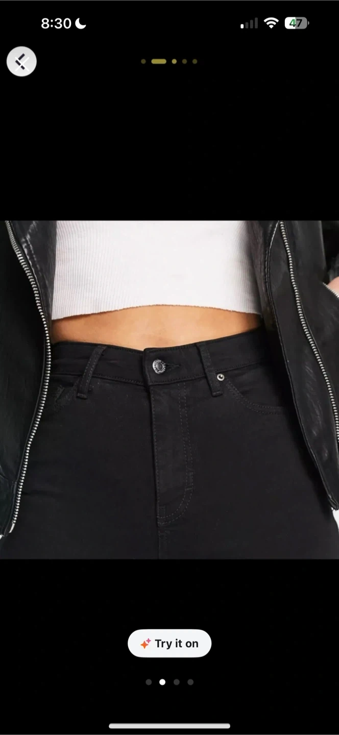 Black Topshop Jamie jeans in size W26 L30. These skinny fit jeans have a high rise and a zip fly. They feature belt loops and five pockets.