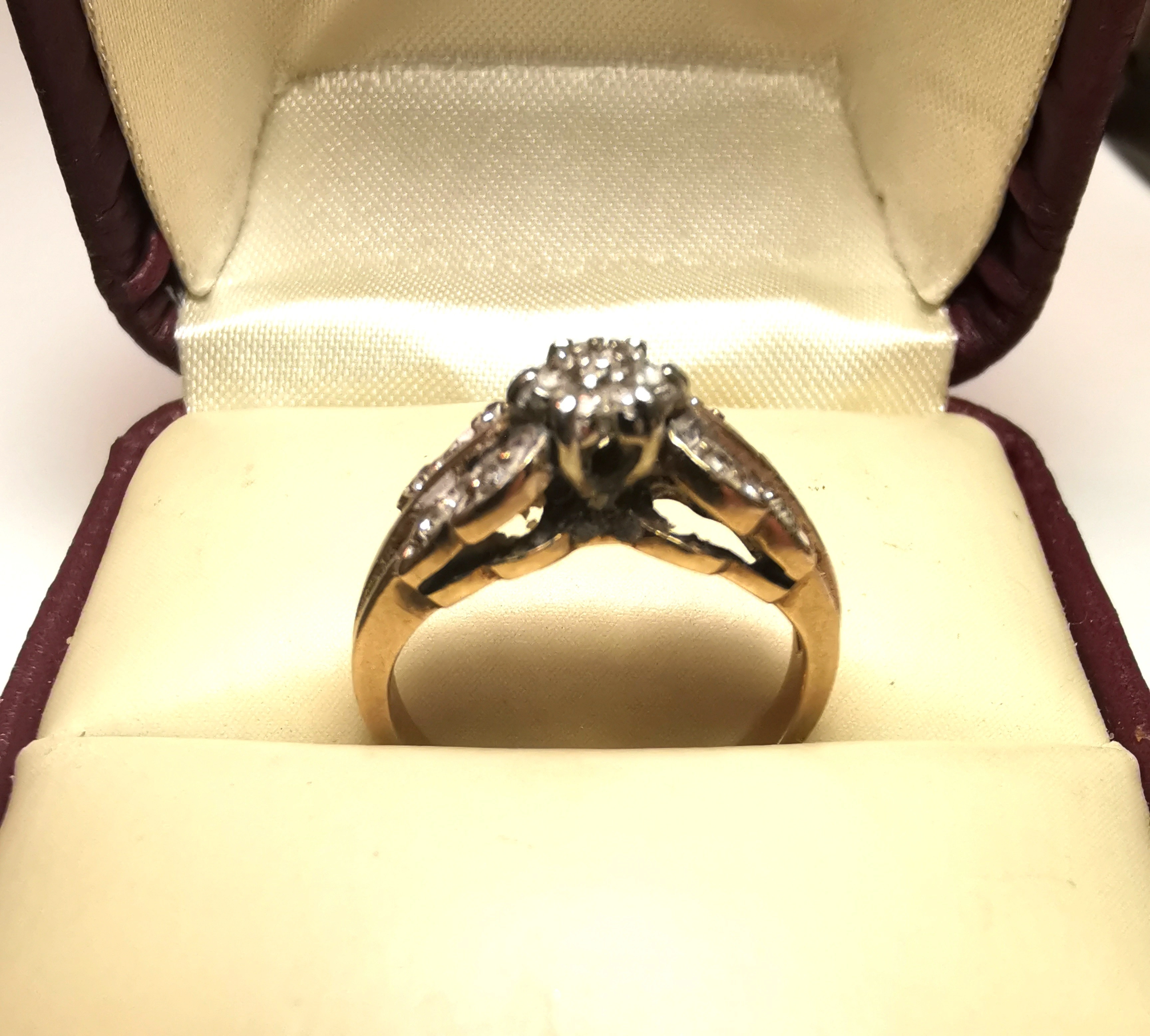 Heavy 3g Vintage 10K Yellow Gold Diamond Cluster Ring Size 4