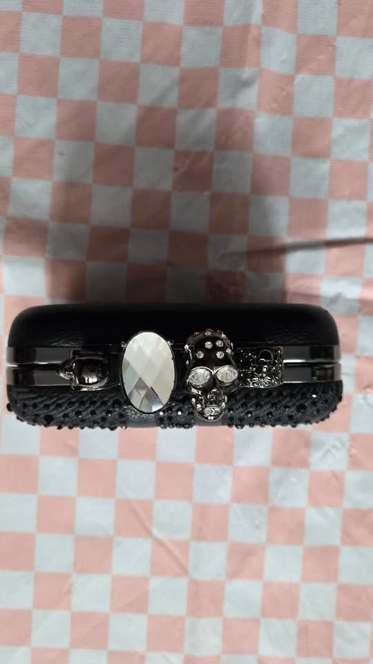 Black Jewelled Union Jack Clutch with Skull Ring Handle