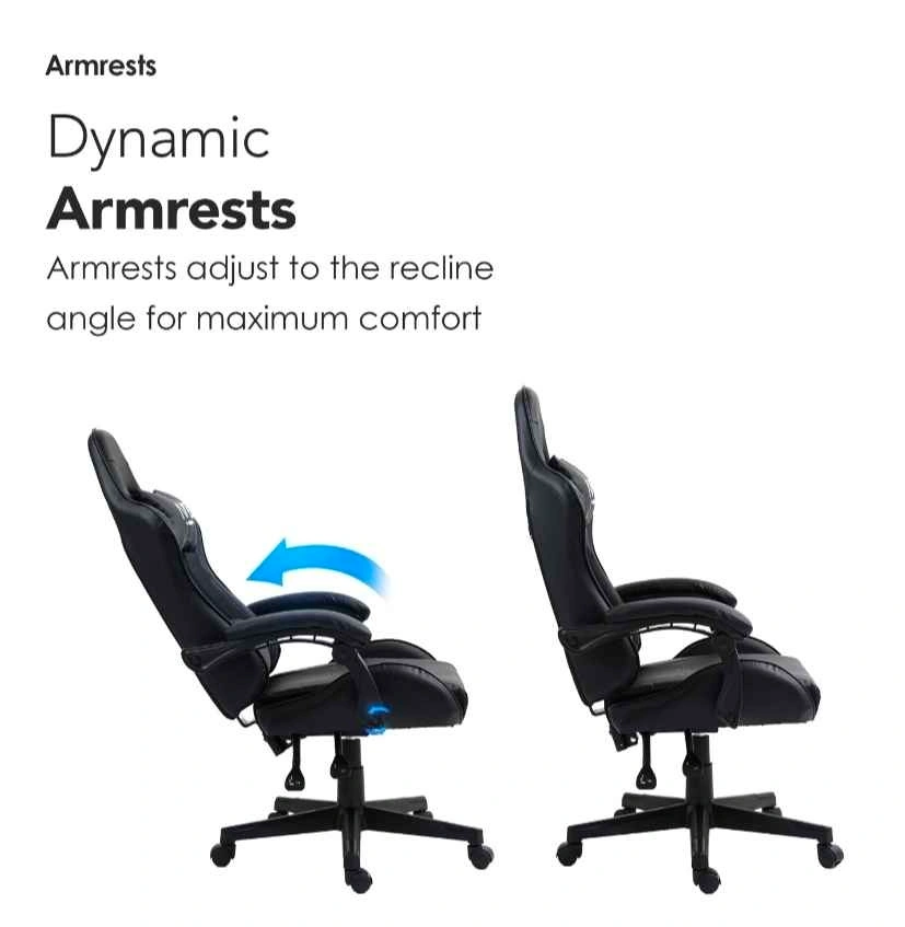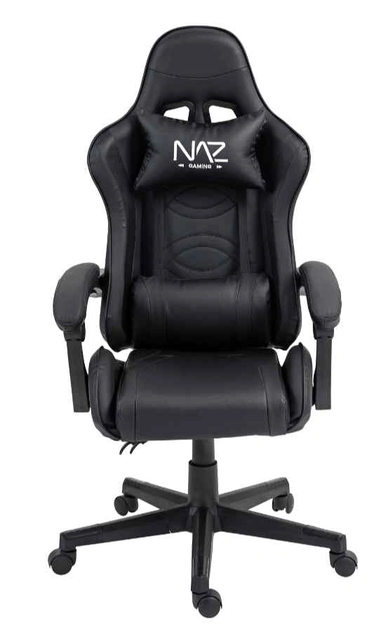 Brand new in box Naz Tachi Ergonomic High-Back Leather Gaming Chair in black. No hidden charges or taxes. What you see is what you get for the listed price. Originally retailed for $300, selling for less than 50% off. This is a very comfortable gaming chair, great for long hours with adjustable neck and back support pillows. Features adjustable height and an adjustable lower backrest for customized comfort.