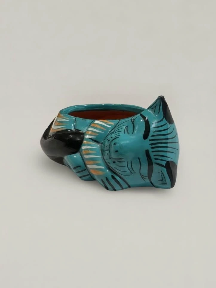 Hand-painted Mexican Folk Art Cat Bowl/Plant Vase