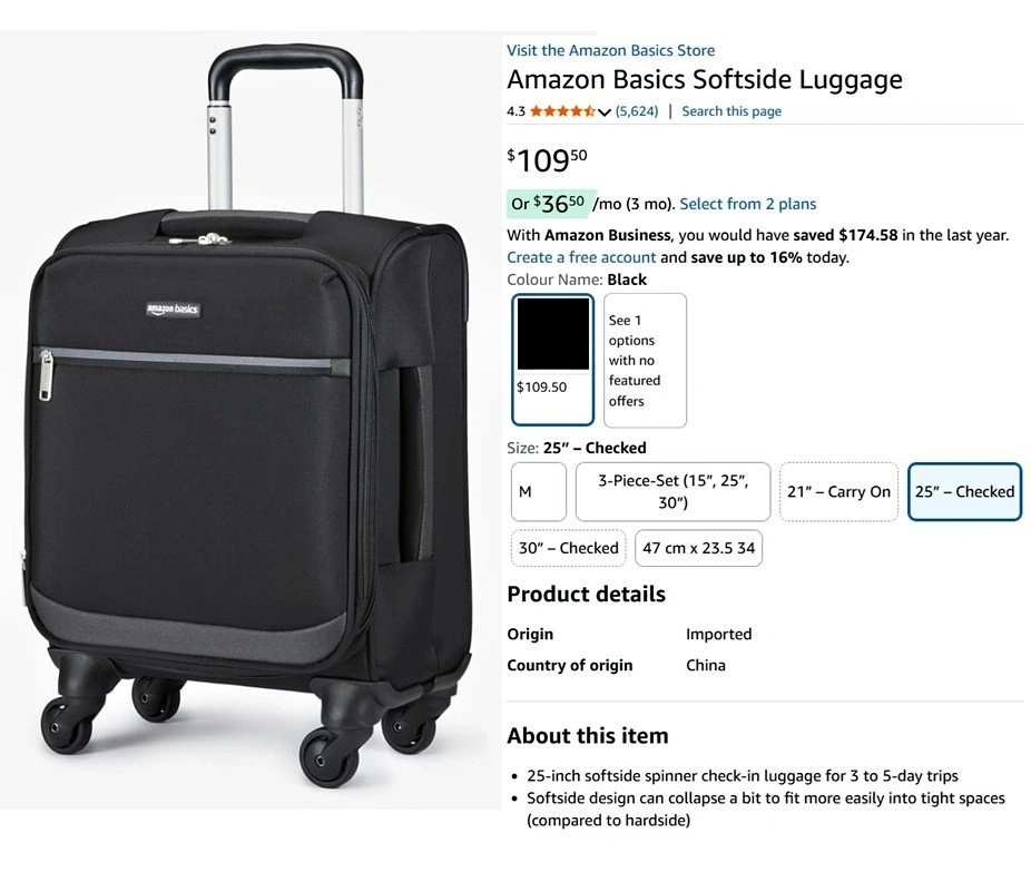 25-inch softside spinner check-in luggage, great for 3 to 5-day trips. The softside design can collapse a bit to fit more easily into tight spaces. It has a fabric lining for added protection and an interior organizer with 3 zippered pockets. The suitcase is expandable for up to 25% additional packing capacity, features solid, strong zippers, a telescoping handle for comfortable maneuvering, and a securely mounted short handle. The 360-degree spinner wheels ensure smooth-rolling mobility in any direction.