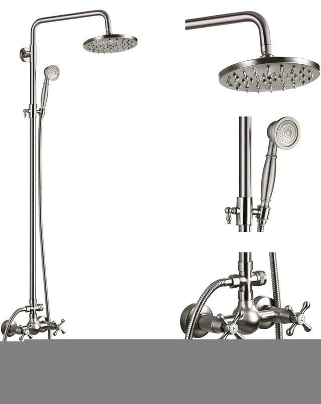 Upgrade your bathroom with this brand new Gotonovo exposed shower faucet set, featuring an 8-inch rainfall shower head and a handheld shower with a cross-handle wall mount in brushed nickel. This set combines contemporary art decor with functionality. Style: Contemporary Art Decor, Colour: Brushed Nickel, 8-inch Rain Shower Head, Handheld Shower. Showering will be an elegant experience. This ad is live which means it's still available!