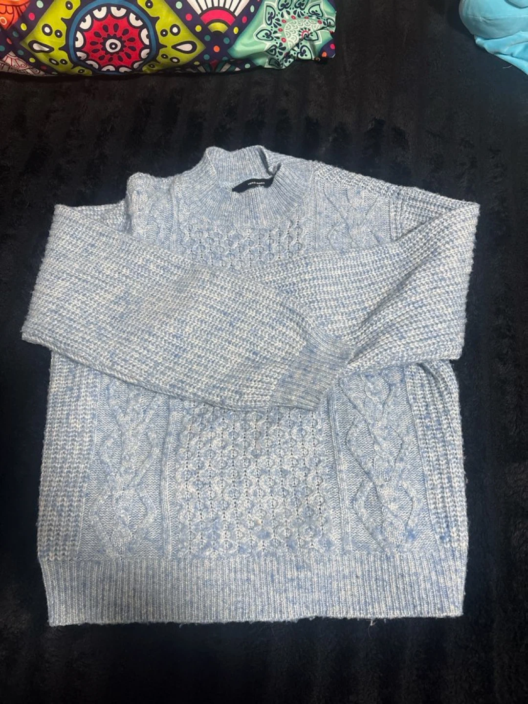 Cozy light blue cable knit sweater from Vera Moda. It's a size medium with a textured pattern. This sweater is made from a soft material, perfect for cooler weather. Pick up cash only