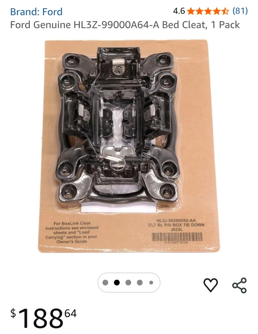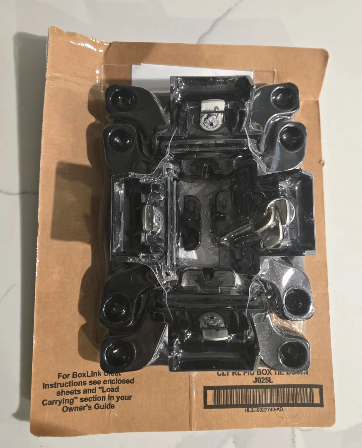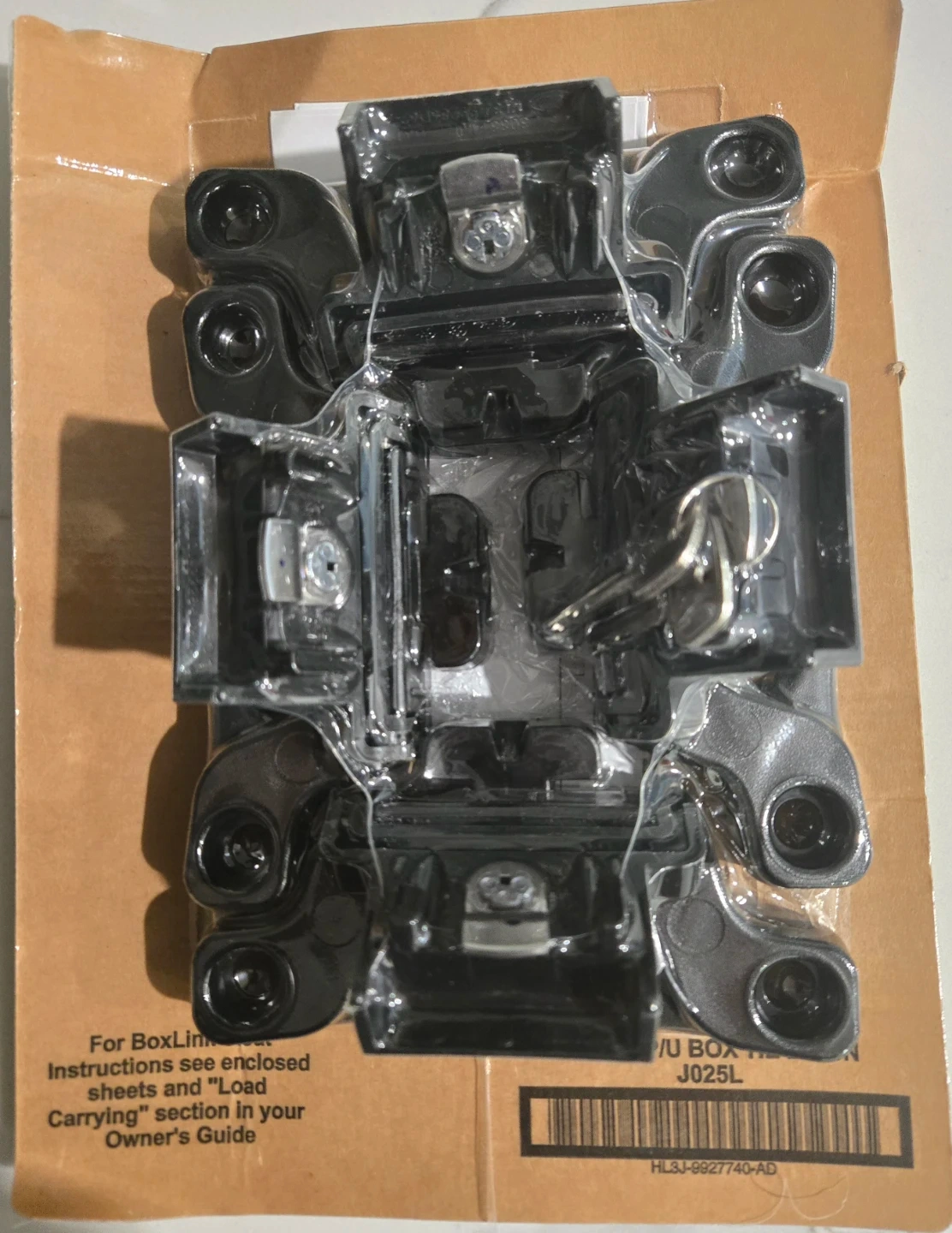 Ford BoxLink cleats for secure cargo tie-downs. These are genuine Ford parts designed for your truck's BoxLink system. Instructions are available on enclosed sheets or in your owner's guide. They're made for reliable load carrying.